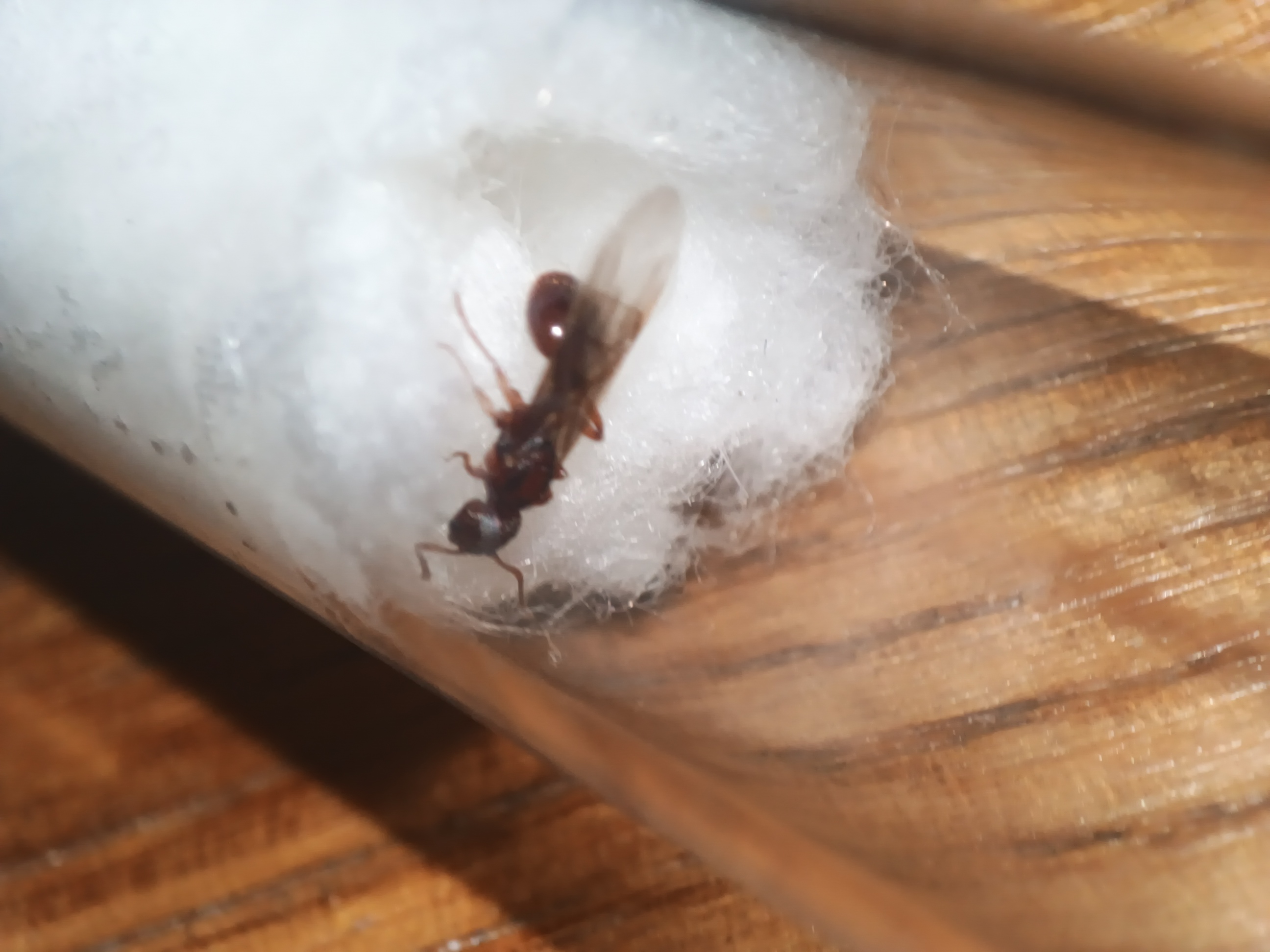 Eine der Königinnen hab ich schon wieder frei gelassen, da sie nur raus wollte. Aber eine hat die rechte Seite ihrer flügel abgeworfen kann es sein dass sie begattet ist oder heißt das nix? Ich werde sie auf jeden Fall im RG behalten