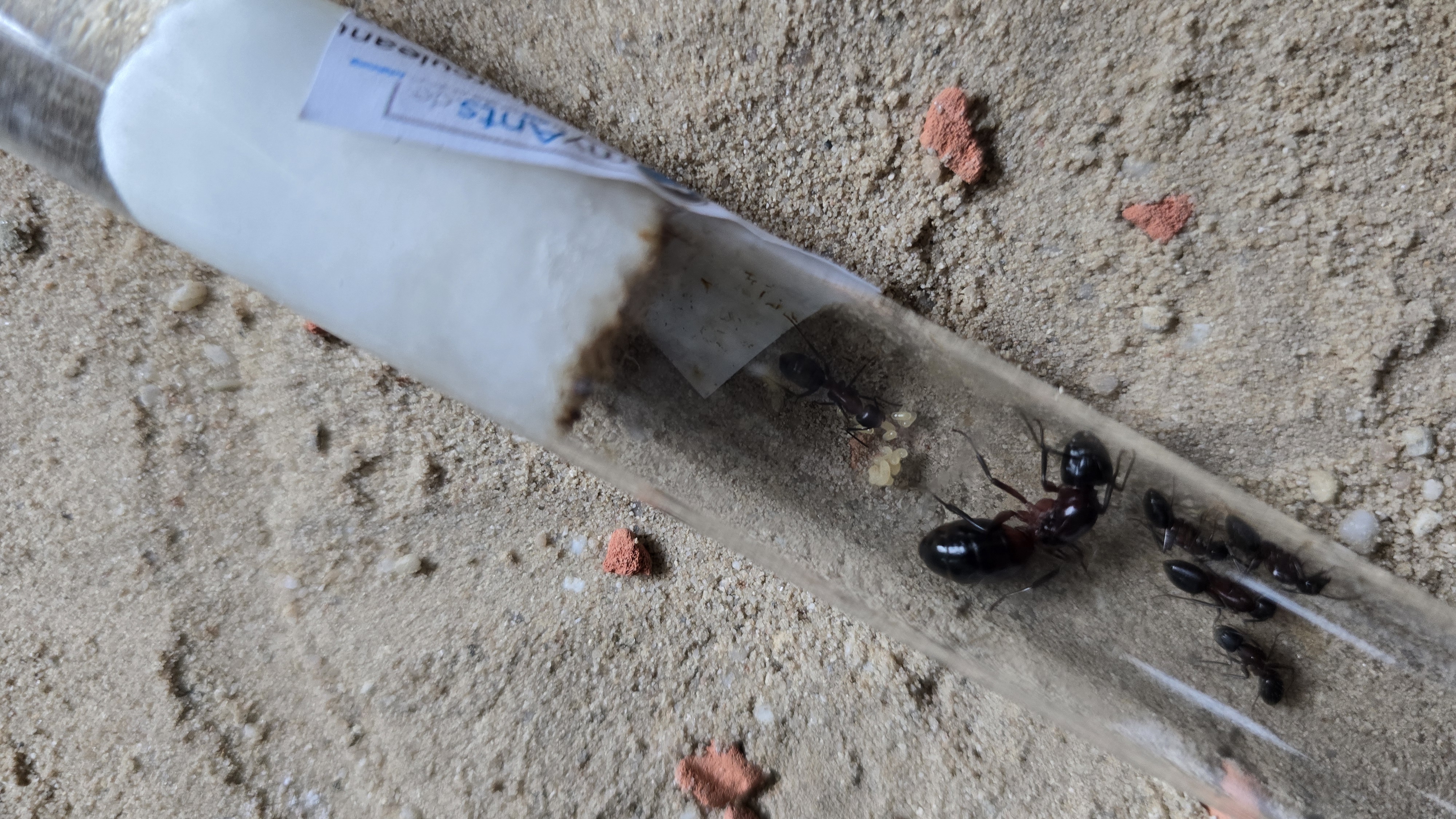 Was die Insekten angeht, ist es normal, dass sie weniger eingetragen werden. Diese dienen hauptsächlich der Fütterung der Larven, die dann heranwachsen. Ich vermute, deine Ameisen bereiten sich bereits auf die Winterruhe vor. Mein Camponotus ligniperdus-Volk, das aus mehreren tausend Individuen besteht, hat momentan auch nur noch kleinere Larven, während die letzten Puppen noch schlüpfen. Das könnte möglicherweise auf die hohen Temperaturen und das reichliche Nahrungsangebot in der Haltung zurückzuführen sein.