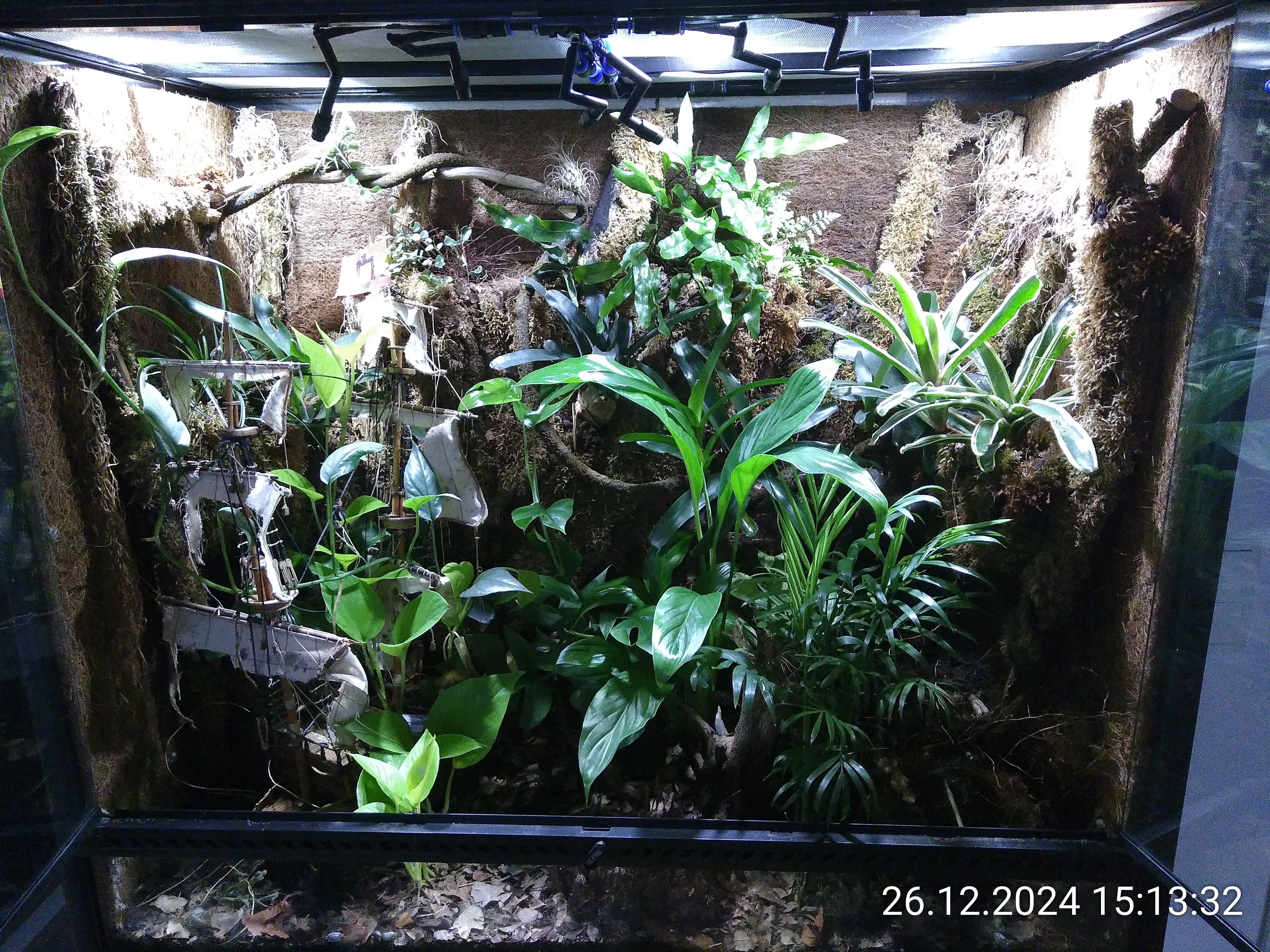 auch hier soll es mal wieder ein Update geben. Wenn auch nicht aus dem besten Grund... Ich habe leider immer noch keine Ameisen in diesem Becken. Dafür entwickeln sich die übrig gebliebenen Pflanzen prächtig und die Ranken haben ihre Arbeit aufgenommen.