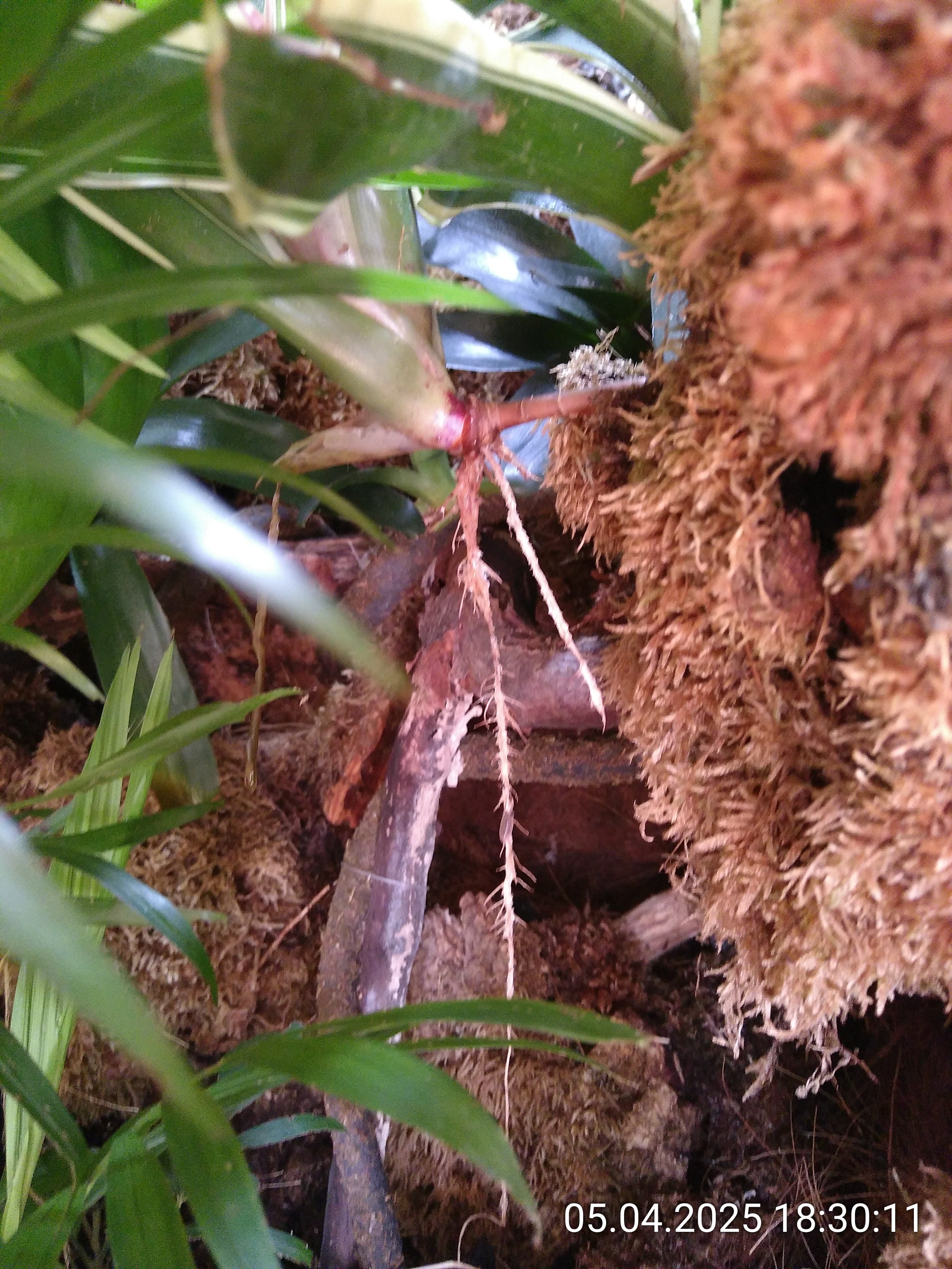 Die Bromelie dahinter hatte auch schon ein mindestens Teenager-Kind. Das musste dann natürlich auch ausziehen.