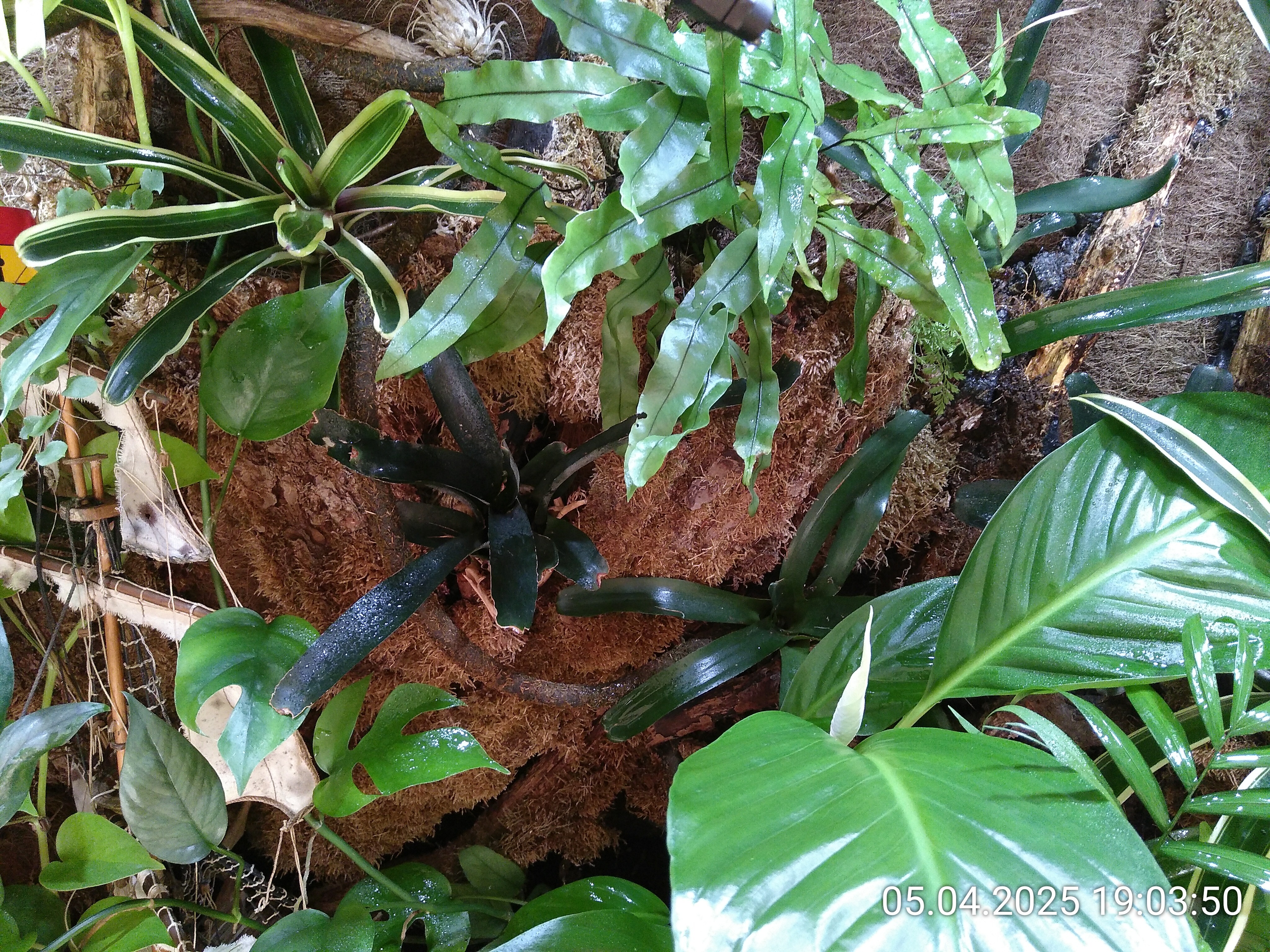 Ich sprühe sogar zusätzlich jeden oder jeden zweiten Tag mit dem Zerstäuber und gieße die Bodenpflanzen mindestens wöchentlich.