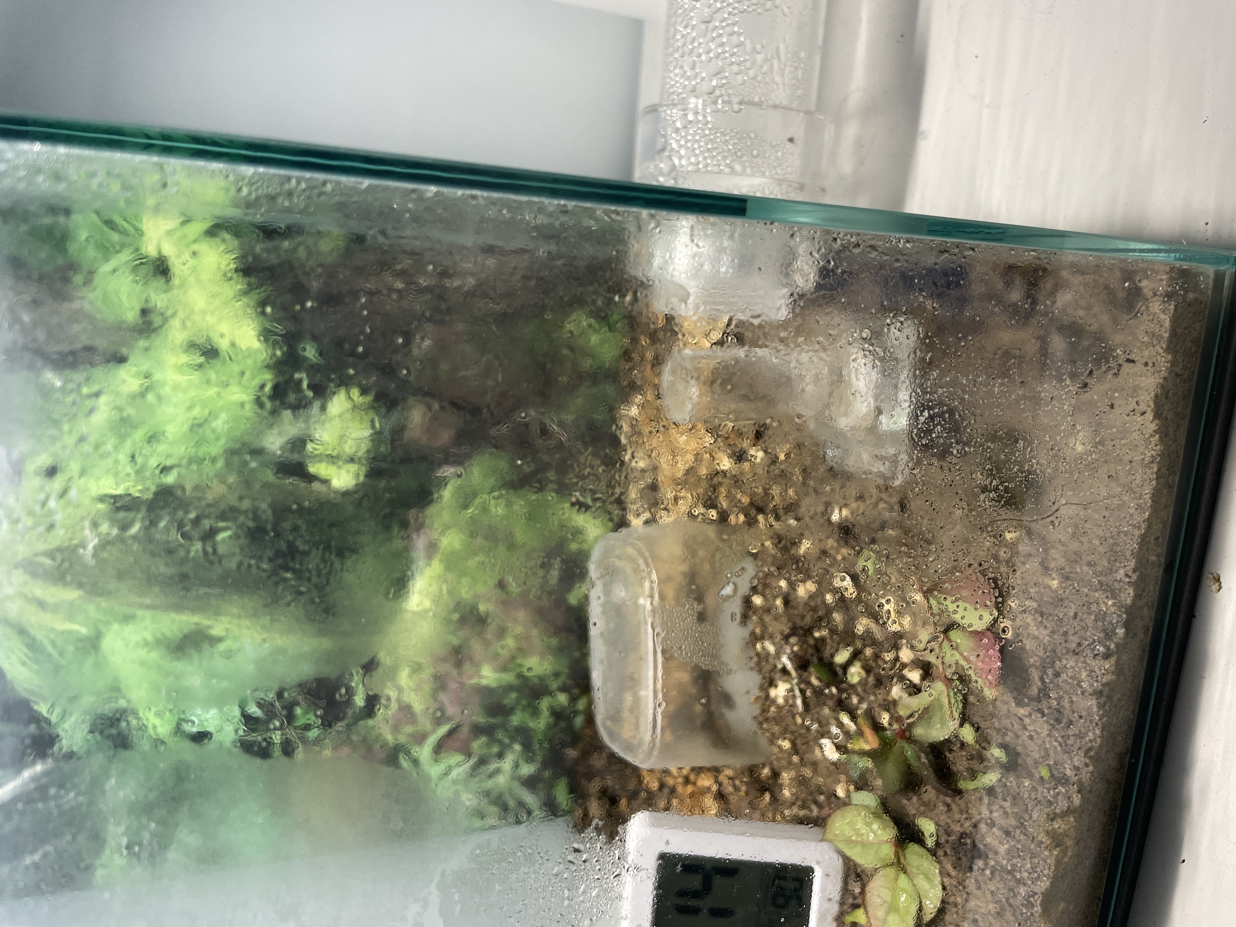 Ist das eine 14 Grad Celsius Anzeige dort neben dem Pilz? Dann ist die Haltung um 10 Grad zu kĂŒhl