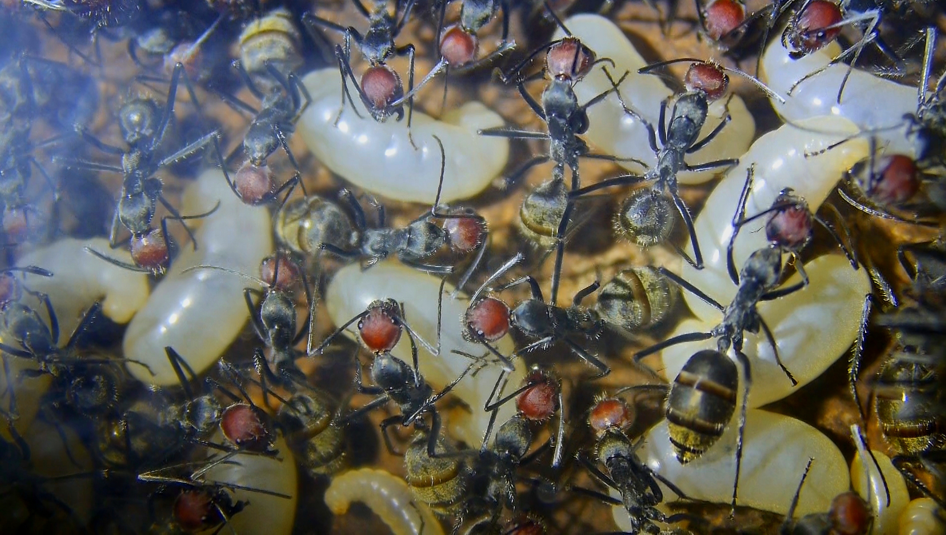 Auffällig hier: Sehr viel Brut für den Camponotus-Vergleich.
