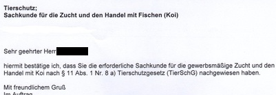 Anbei noch die Bemerkung, dass fĂŒr jede andere Art von Lebewesen eine SachkundeprĂŒfung bei dem zustĂ€ndigen VeterinĂ€ramt abgelegt werden muss
