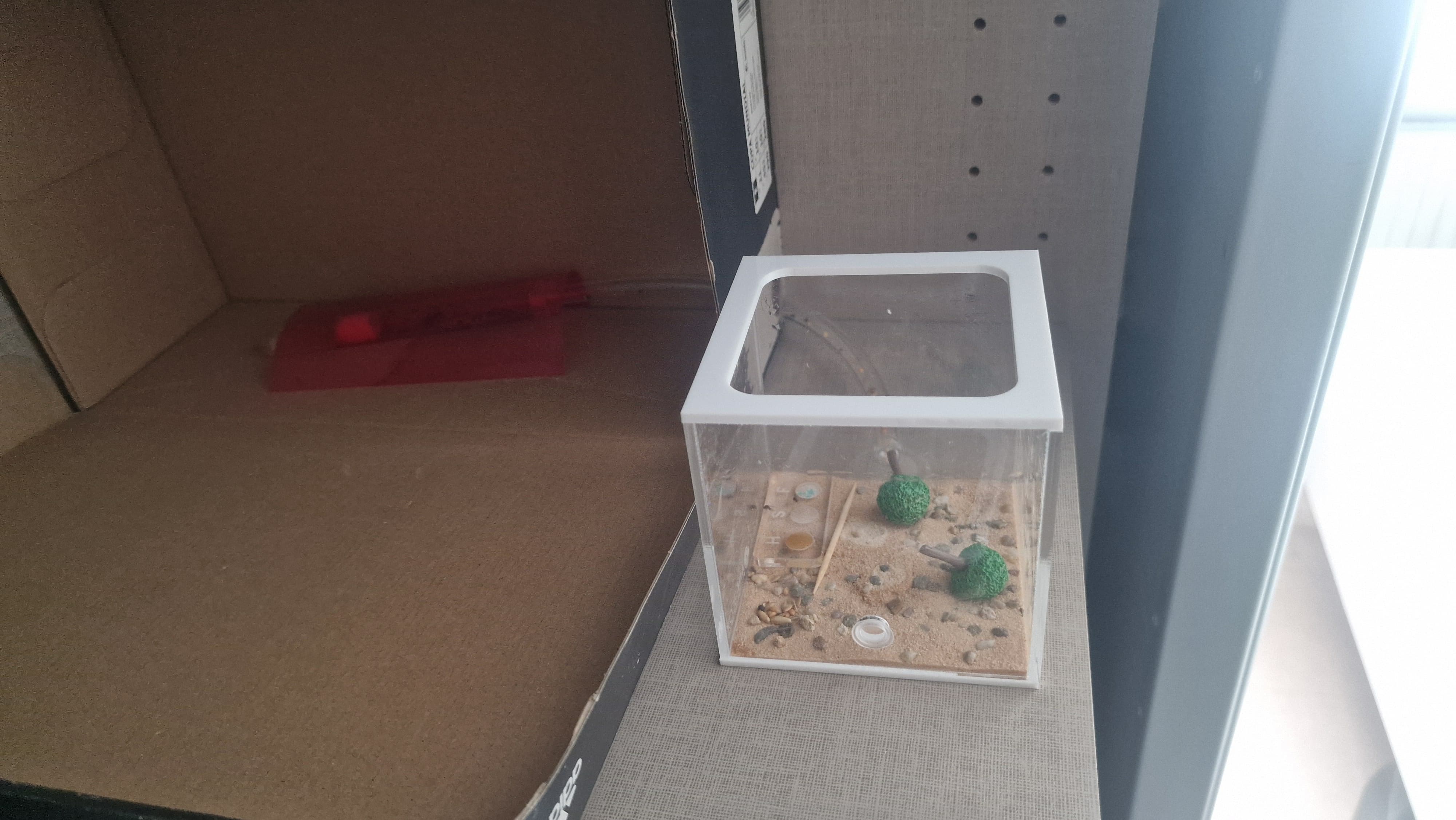 Ich habe sie am ersten Tag bis am Abend ruhen lassen und dann habe ich sie mit der Arena verbunden und sie in ein Schuhkarton gebunkert