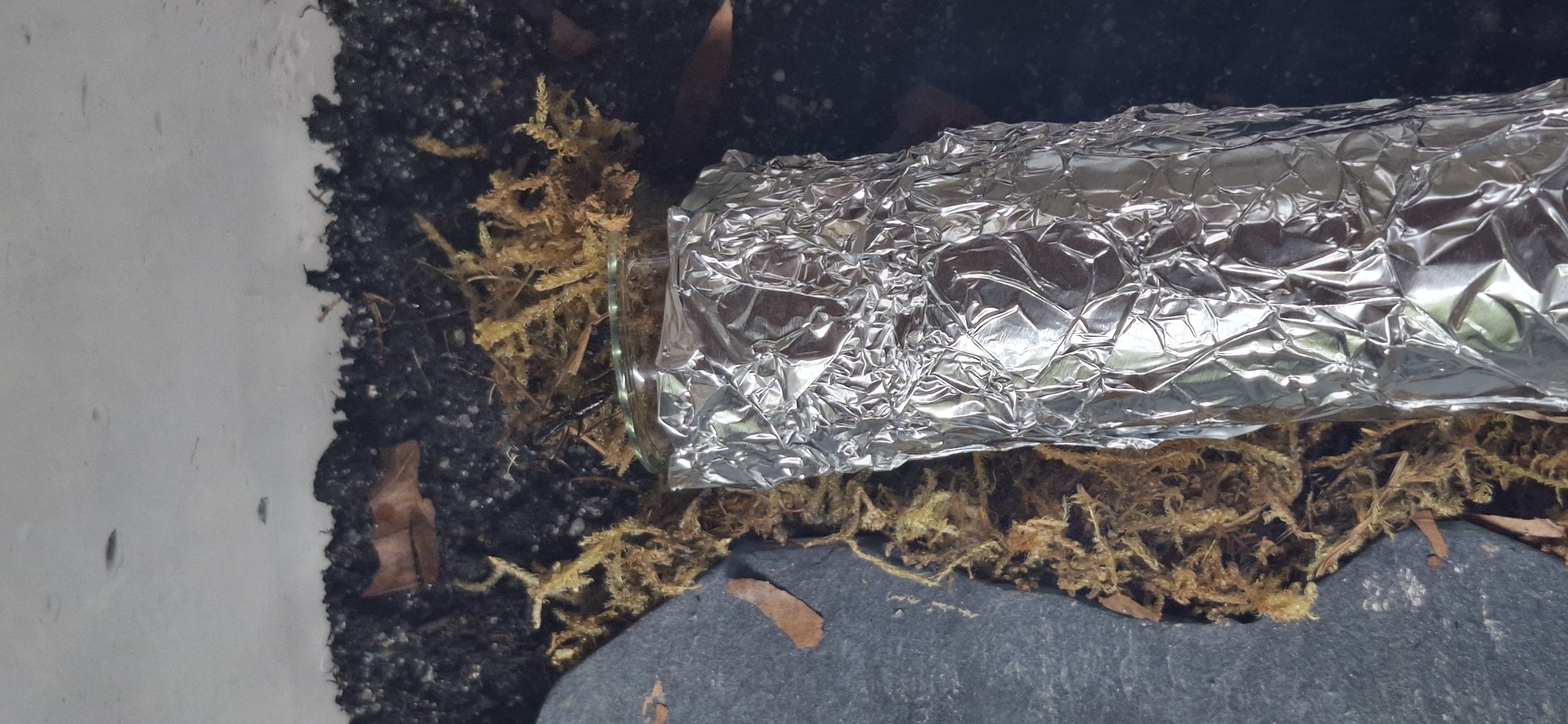 Im Moment gerade, geht es meinen chelifer ziemlich gut. Ich konnte die Temperatur im Reagenzglas auf 23-25 grad erhöhen. Über die Luftfeuchtigkeit in ihrem Nest, kann ich euch nicht viel sagen. Ich denke aber das es ihnen passen sollte. Es scheint aber recht feucht zu sein.