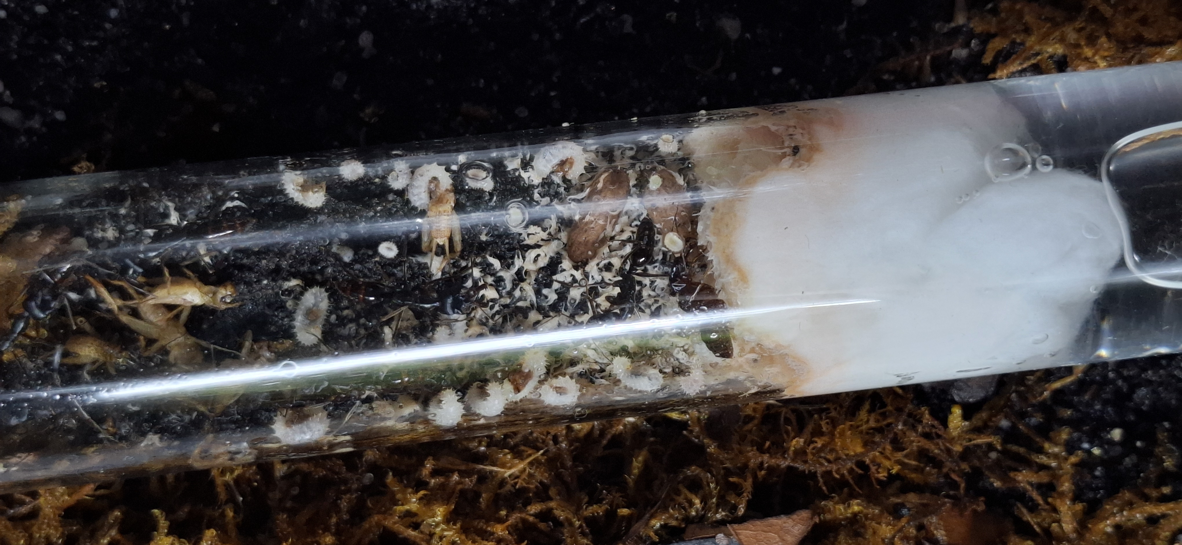 Die Gyne ist wunderschön und war bei der ganzen Tortur ziemlich ruhig. Als ich nach einer bis zwei Stunden wieder hinein sah, waren alle weg! Sie sind jetzt alle im Reagenzglas und graben bis jetzt, einige Stunden später, das halbe Reagenzglas um.