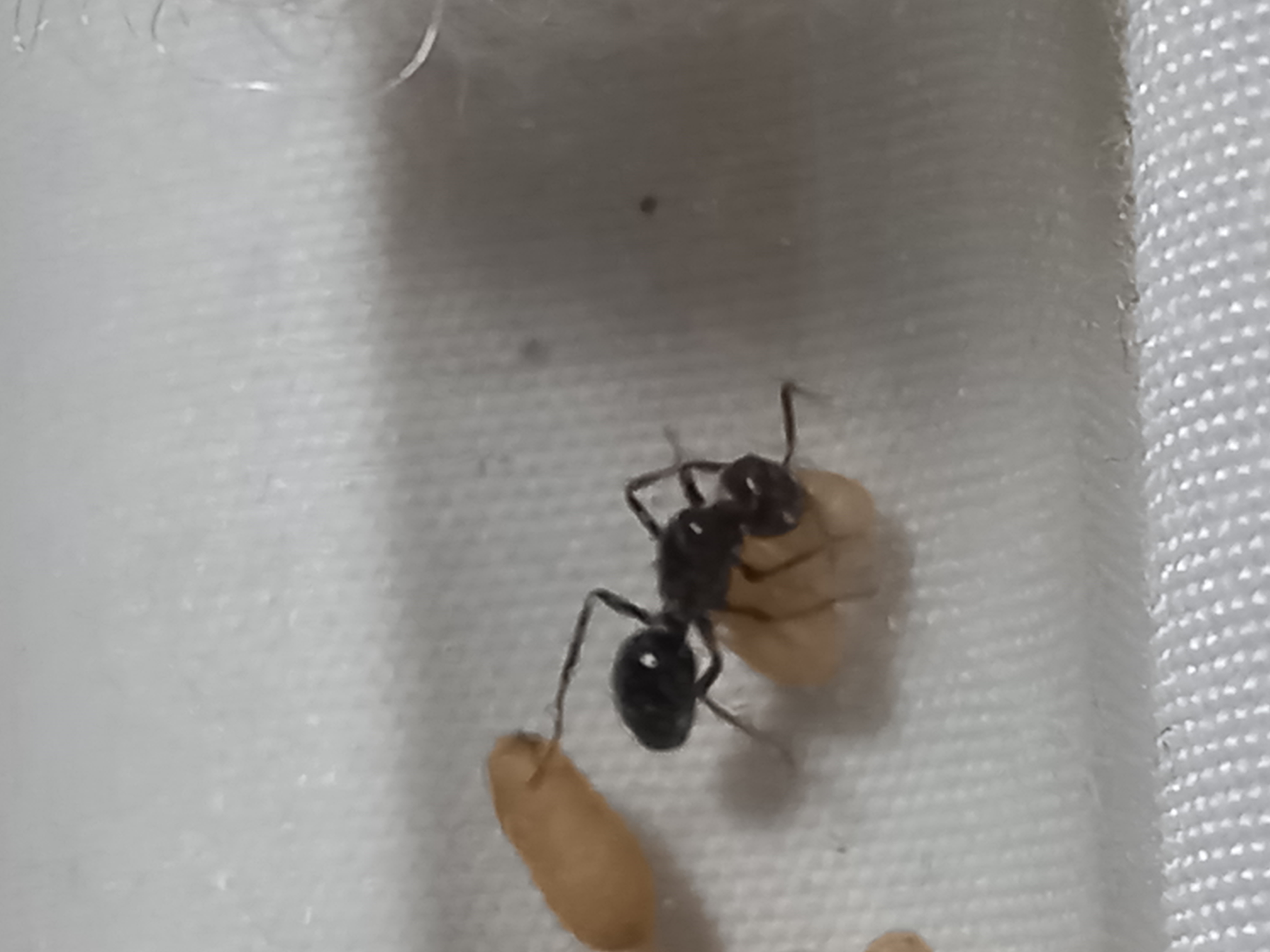 Ich hab ihr mal Lasius niger Puppen gegeben, da sie ja sozial parasitär gründet. Nur leider denke ich das die meisten Männchen werden.