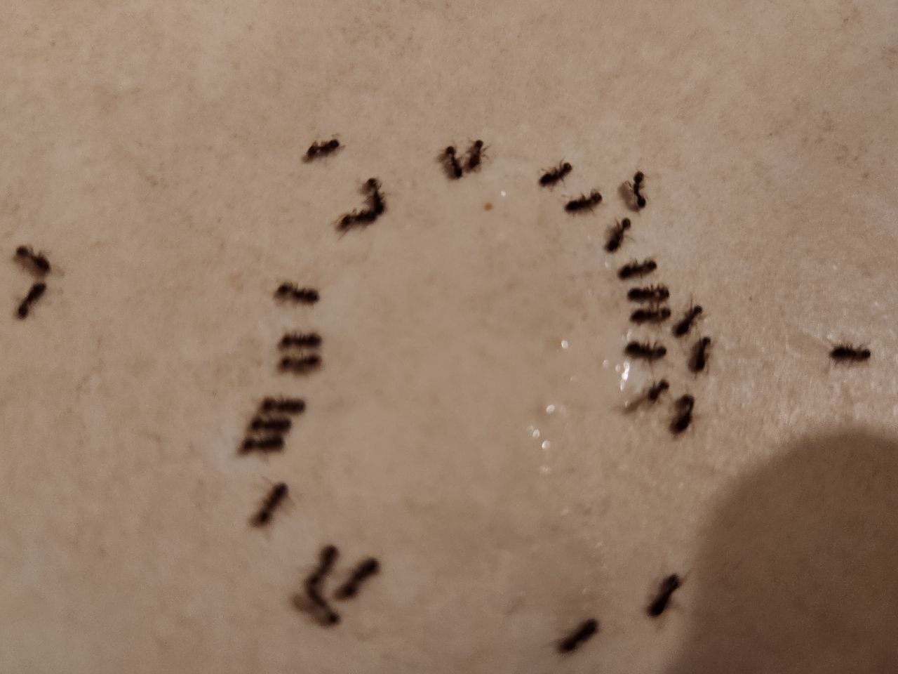 Das war jetzt eine Woche her, die Ameisenzahl war schon gering (Statt 30x auf einmal hab ich vll 3 herumschwirren gesehen), und hab heute ein Glas mit Himbeersirup in die Spüle geschüttet. 2 Stunden später, 20 Ameisen in der Spüle. Frustriert hab ich den Köder etwas umgestellt (was man denk ich eig nicht soll?), und viel näher an die Wand. Einige Stunden später, weitere 20 Ameisen gefühlt dort, wo der Köder stand. Ich könnt mir die Haare ausreißen, weil ich seh nach wievor nichts in den Köder reinwandern. Zu keiner Uhrzeit. Jetzt hab ich nochmal alles sauber gewischt und sehr vereinzelt 5-10 Ameisen am Boden herumschwirren, wahrscheinlich auf der Suche nach dem zuvor identifiziertem Essen.