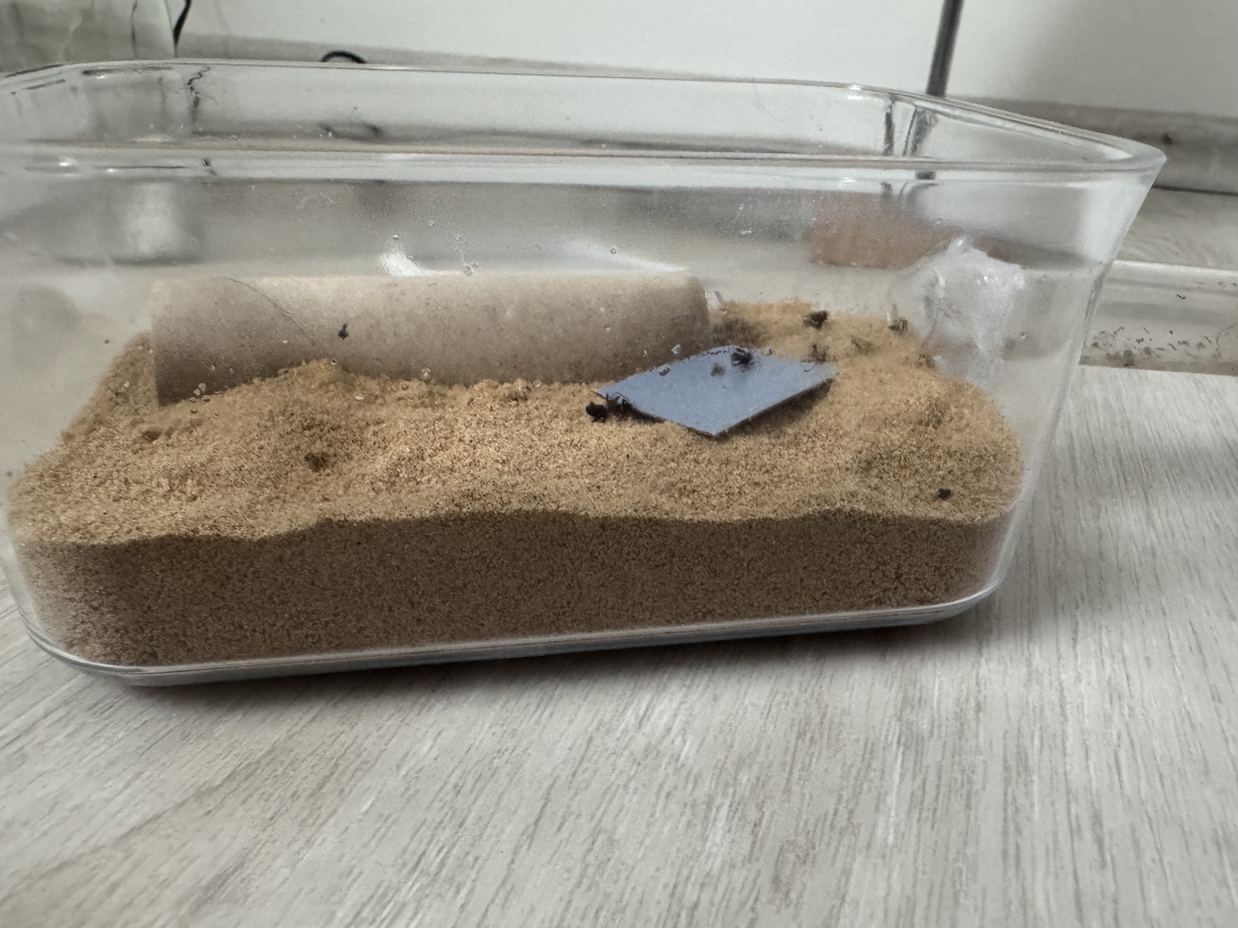 ich habe die Kolonie mit etwa 5–10 Arbeiterinnen bei myants gekauft. Als sie bei mir ankamen, lagen bereits einige tote Tiere im Reagenzglas, was mich ziemlich ĂŒberrascht hat. Ich konnte nur noch drei lebende Arbeiterinnen zĂ€hlen. Am nĂ€chsten Tag war erneut eine tote Arbeiterin zu sehen.