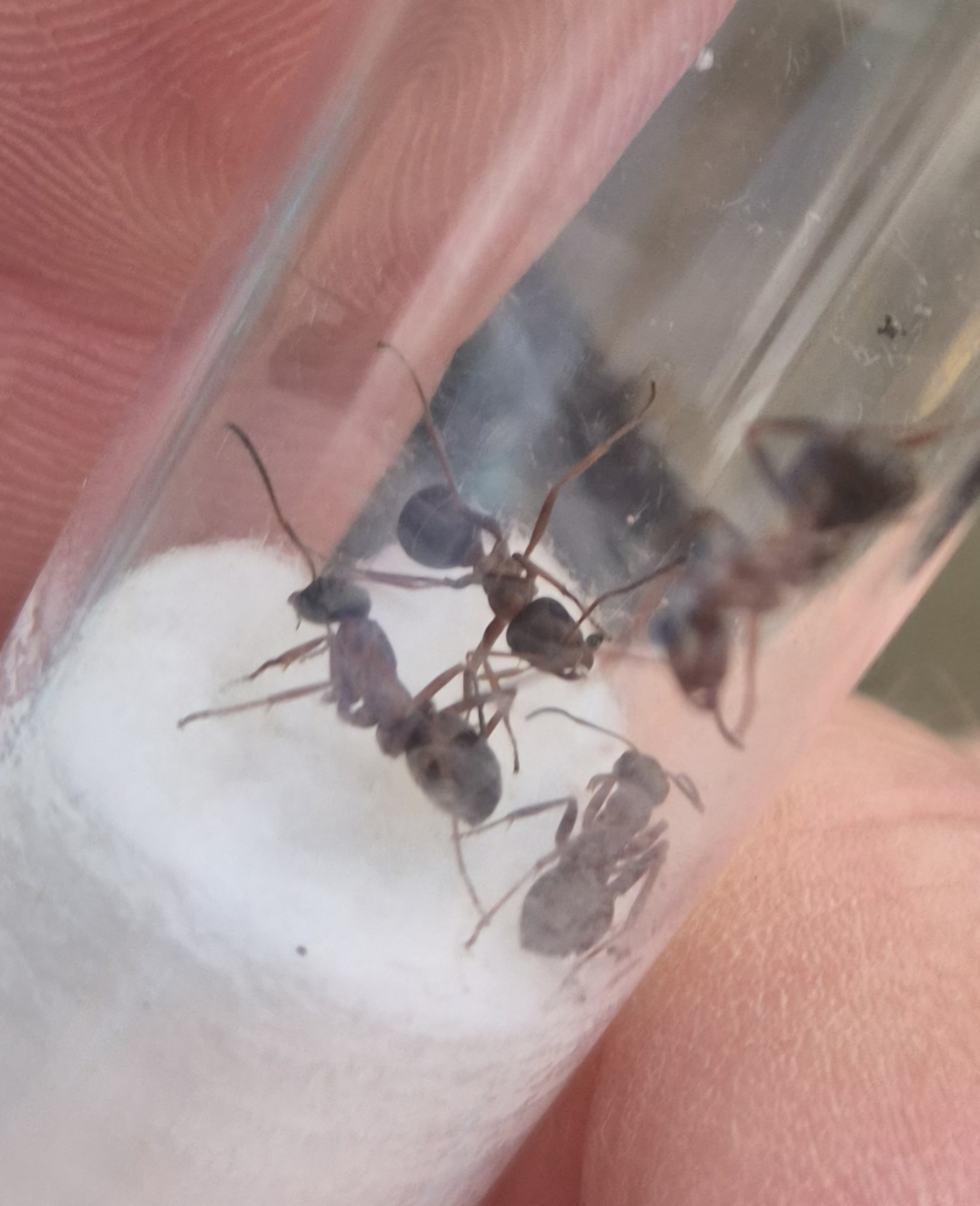 Am Lasius Volk seitlich dran dann Unmengen geflügelte Geschlechtstiere einer mir unbekannten Art und irgendein gelbes Gewusel was sich erst be näherer Betrachtung als die Arbeiterinnen von Soleinopsis fugax herausstellte-irre wie klein die sind!