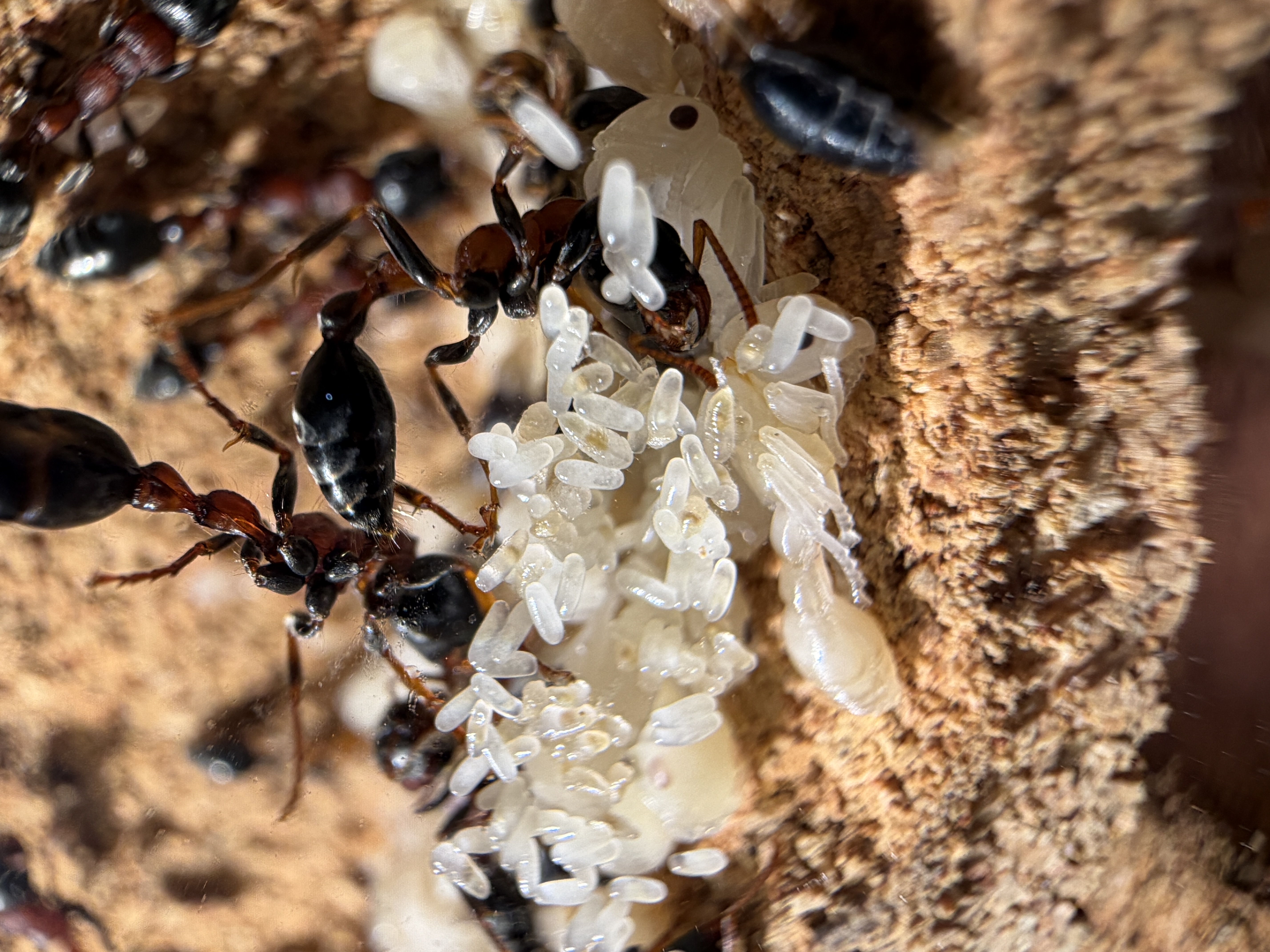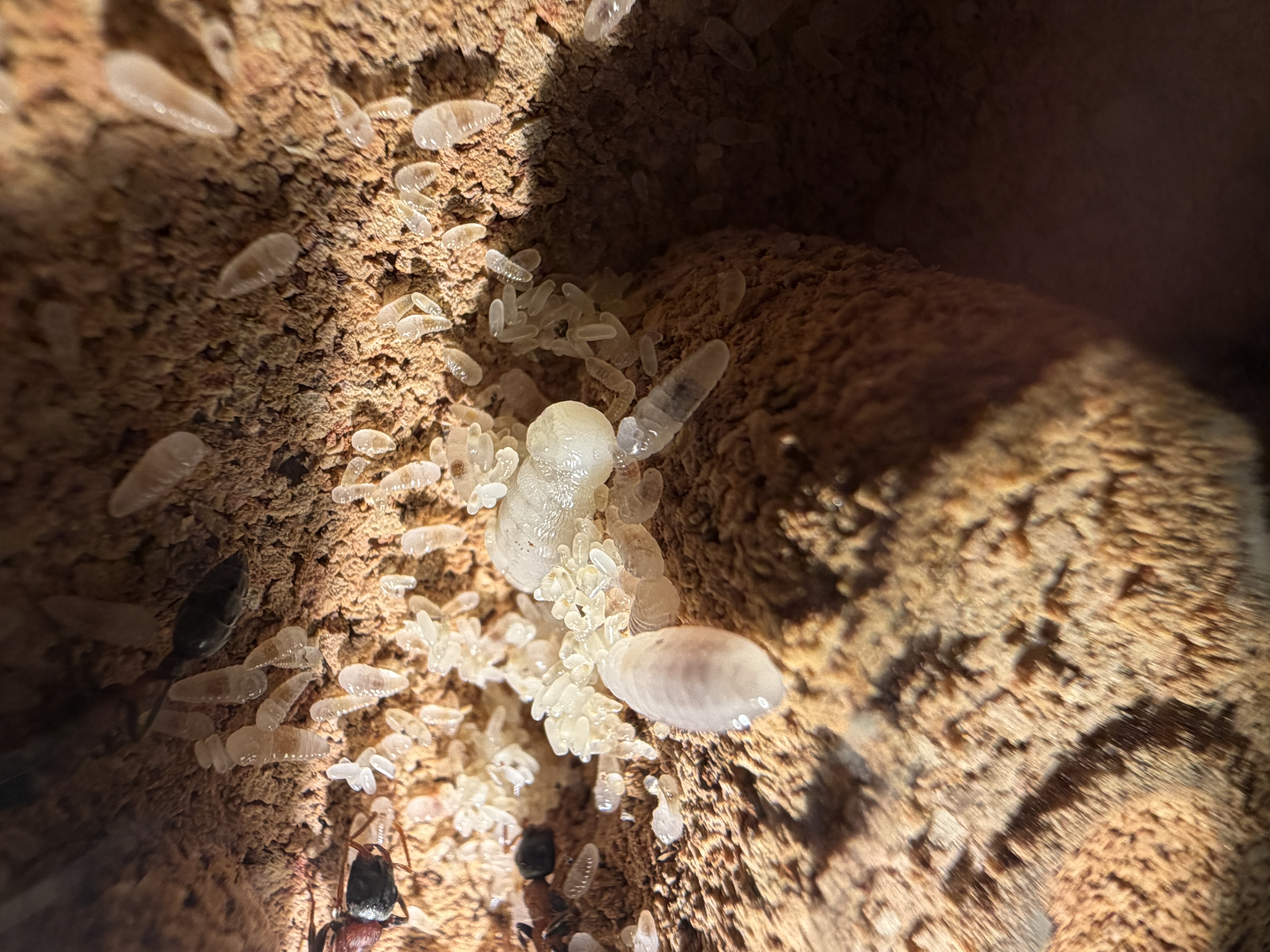 Larven zu sehen. Der GröĂenvergleich zu den Arbeiterinnen ist schon enorm. Was da wohl rauskommt?