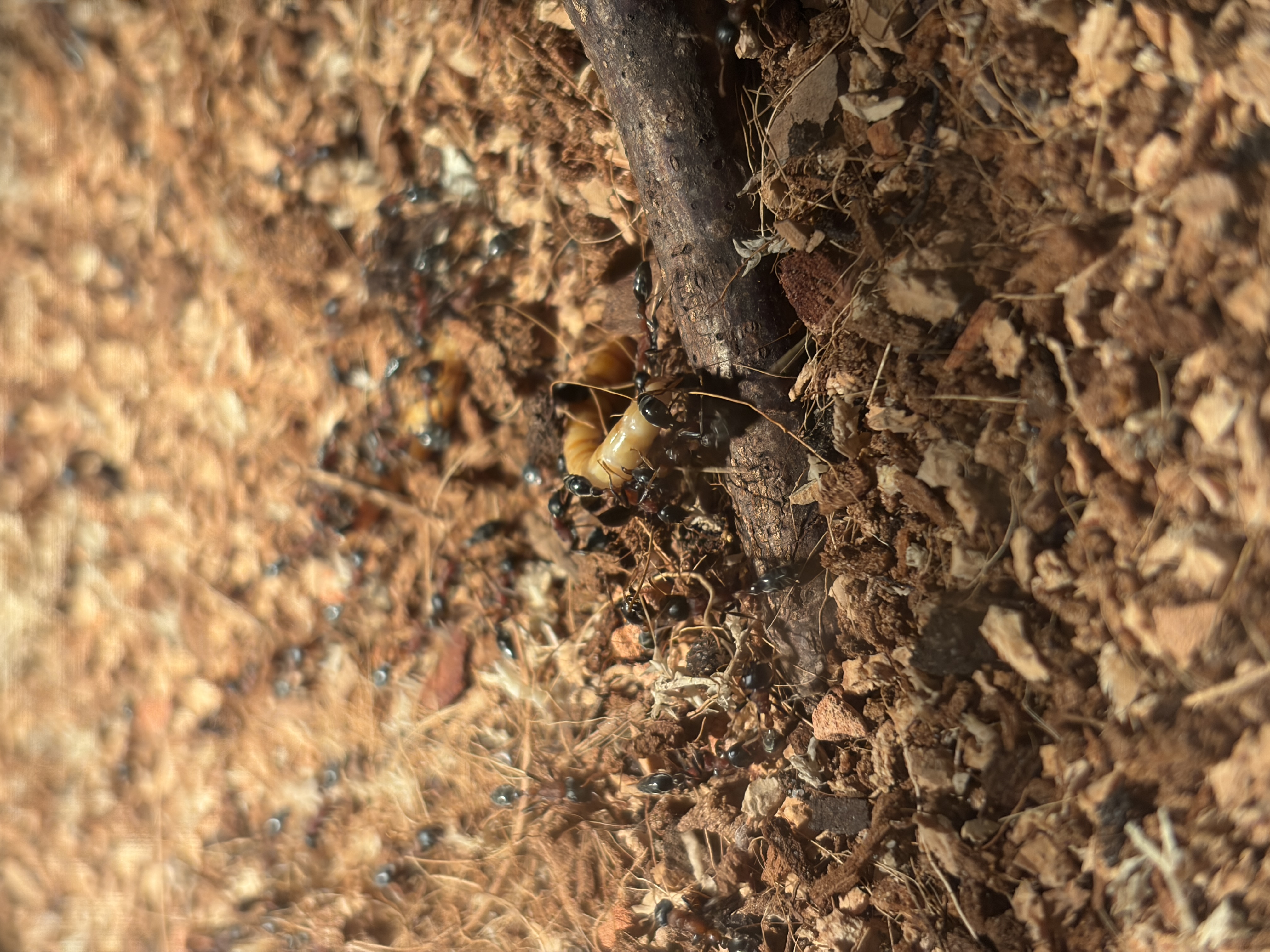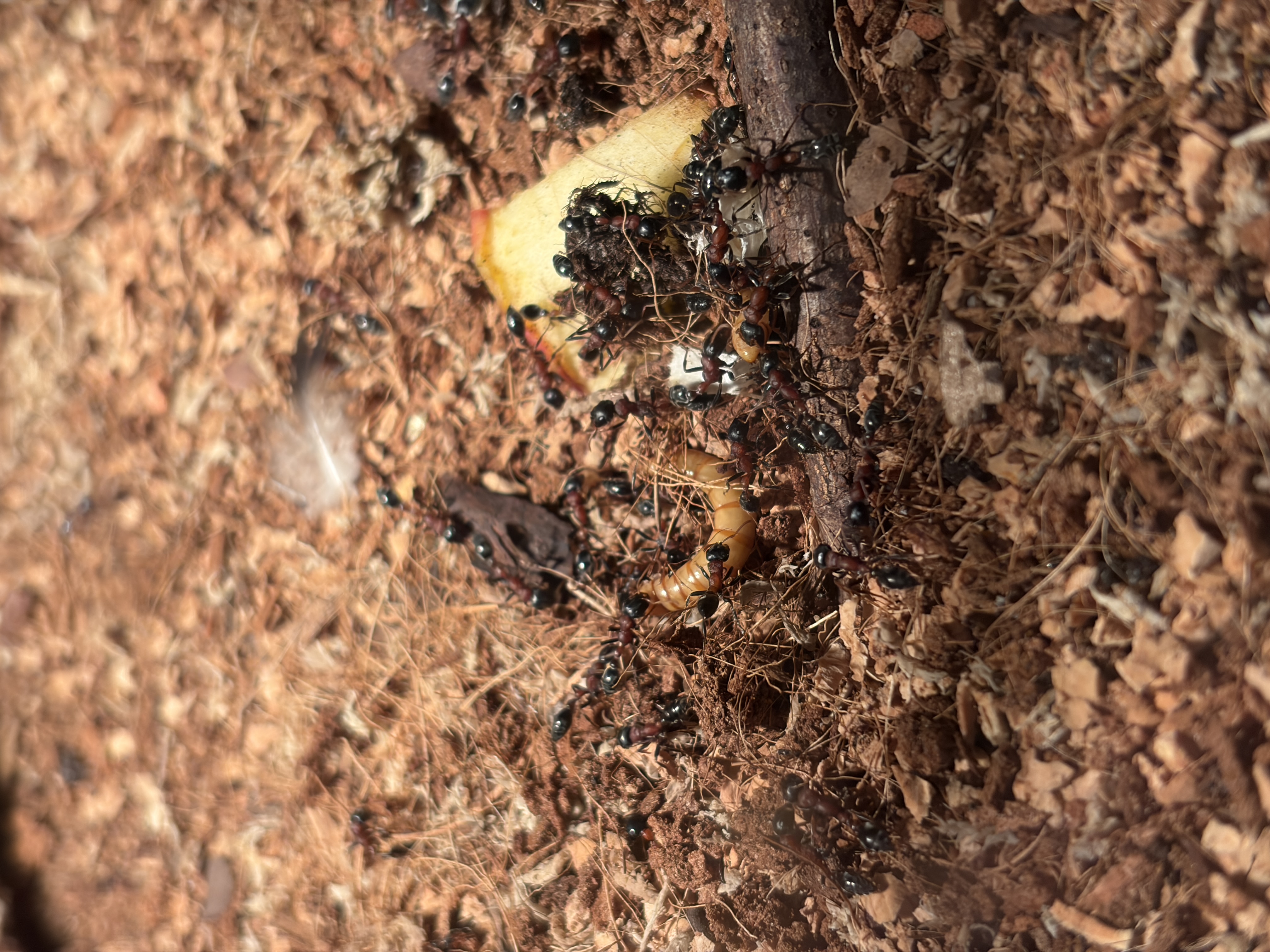 Ich habe die Kolonie alle 3 Tage mit 4 MehlwĂŒrmern gefĂŒttert.