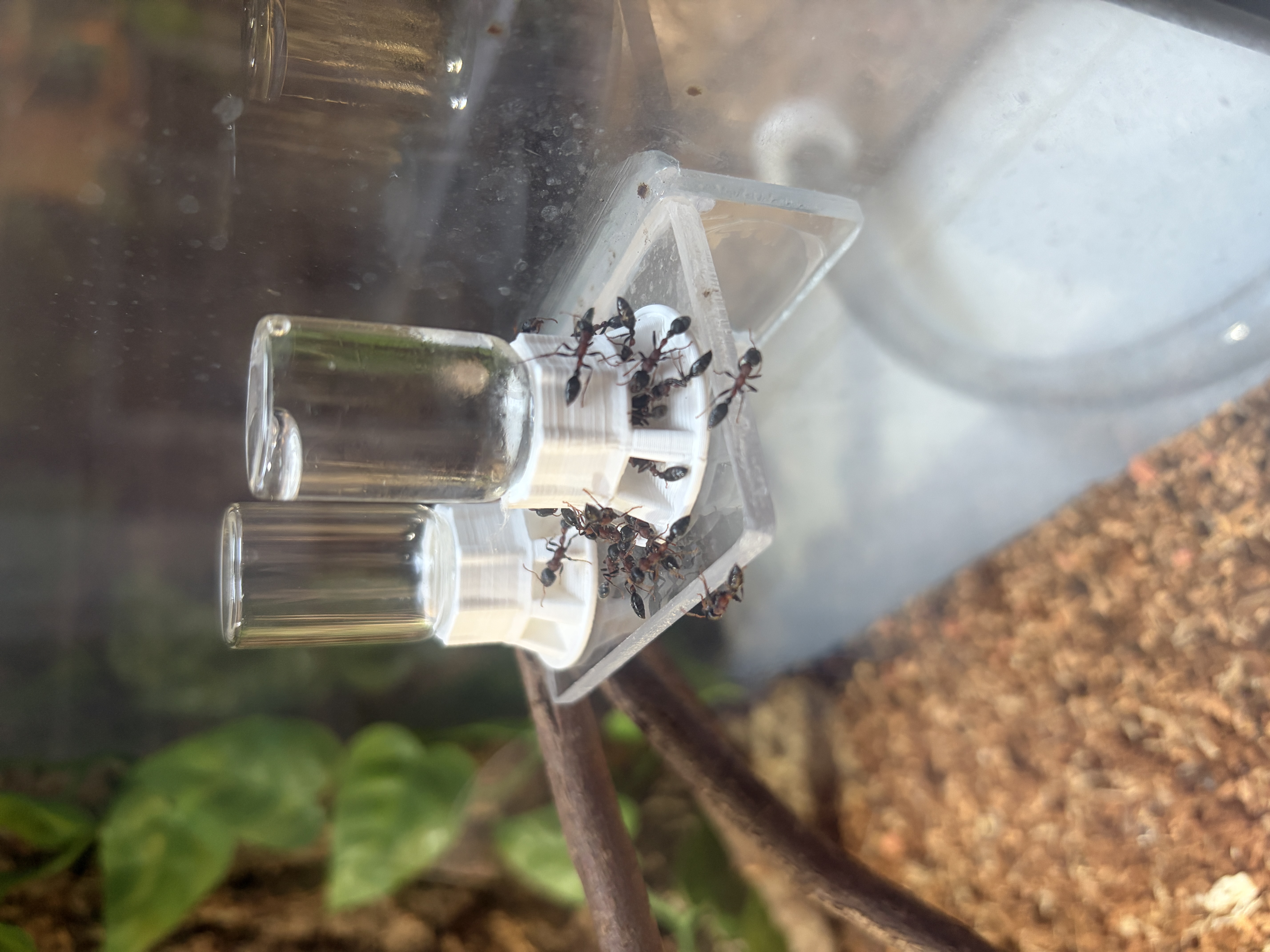Nach lÀngerer Zeit muss das Formicarium wieder einmal gereinigt werden. Es gestaltet sich mittlerweile sehr schwierig, denn die Anzahl der Arbeiterinnen in der Arena ist konstant bei 30-50 Ameisen.