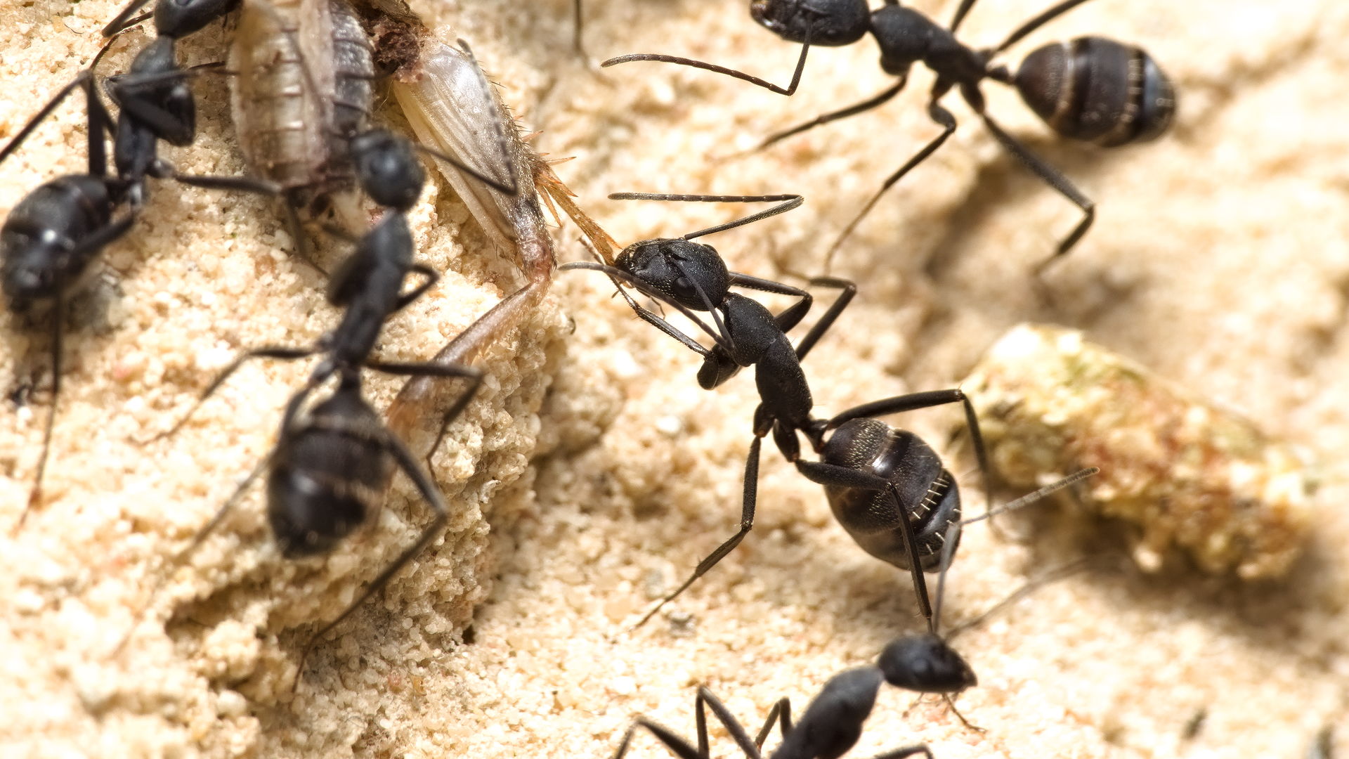 Australische Meranoplus sp. bei der FĂĽtterung mit MehlwĂĽrmern.