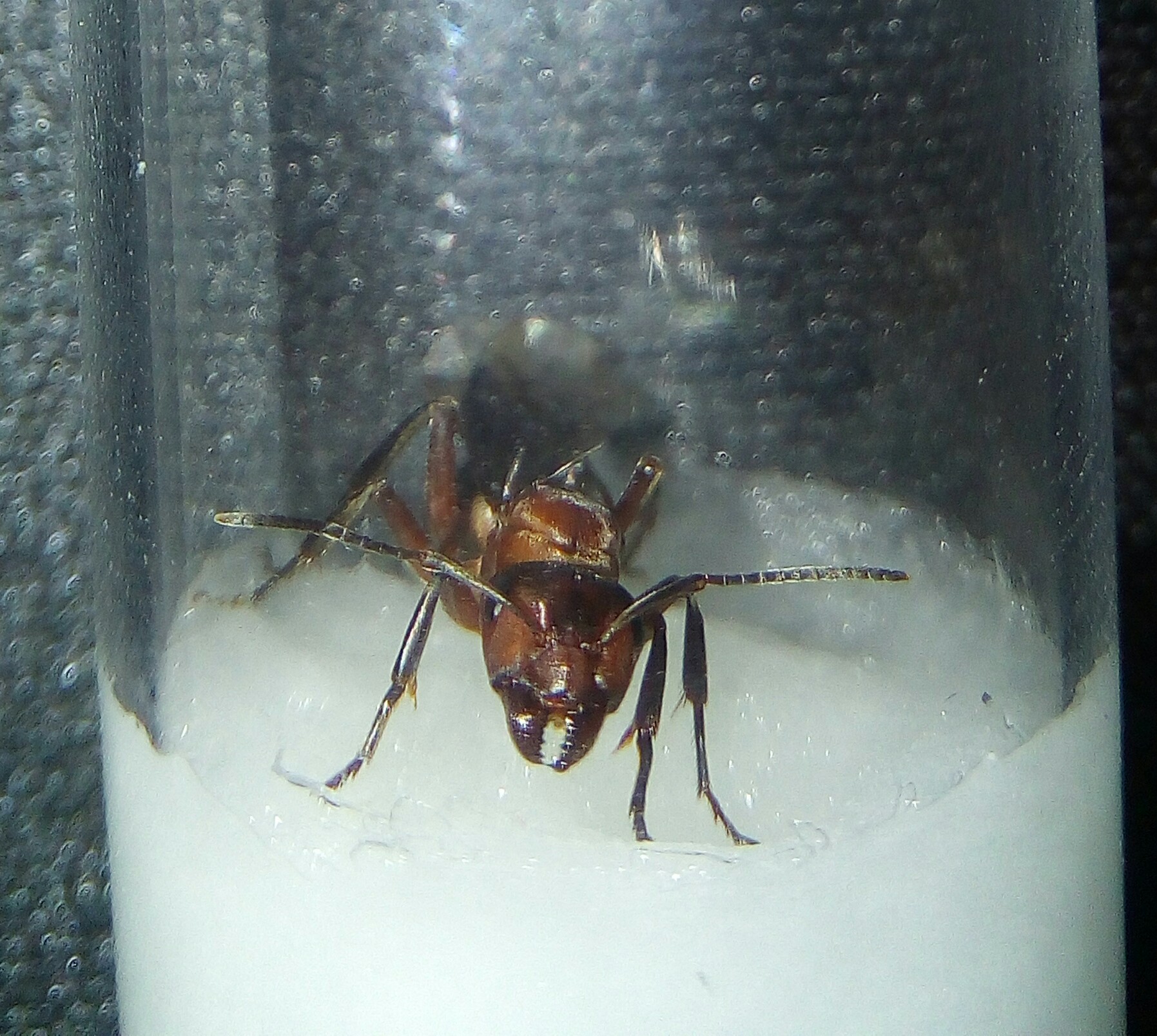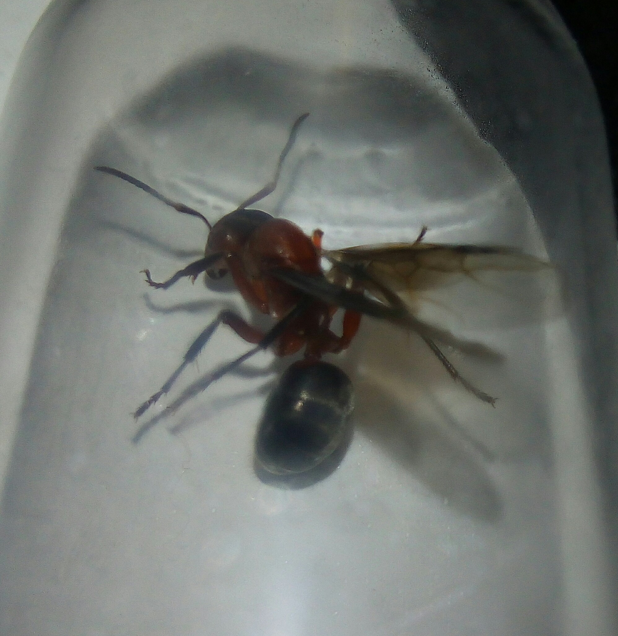 Habe heute einen kleinen Spaziergang gemacht, um nach Gynen zu suchen. Habe zwei schwarze Formica-Gynen gefunden, und eben auch dieses (noch) geflügelte Tier hier.
