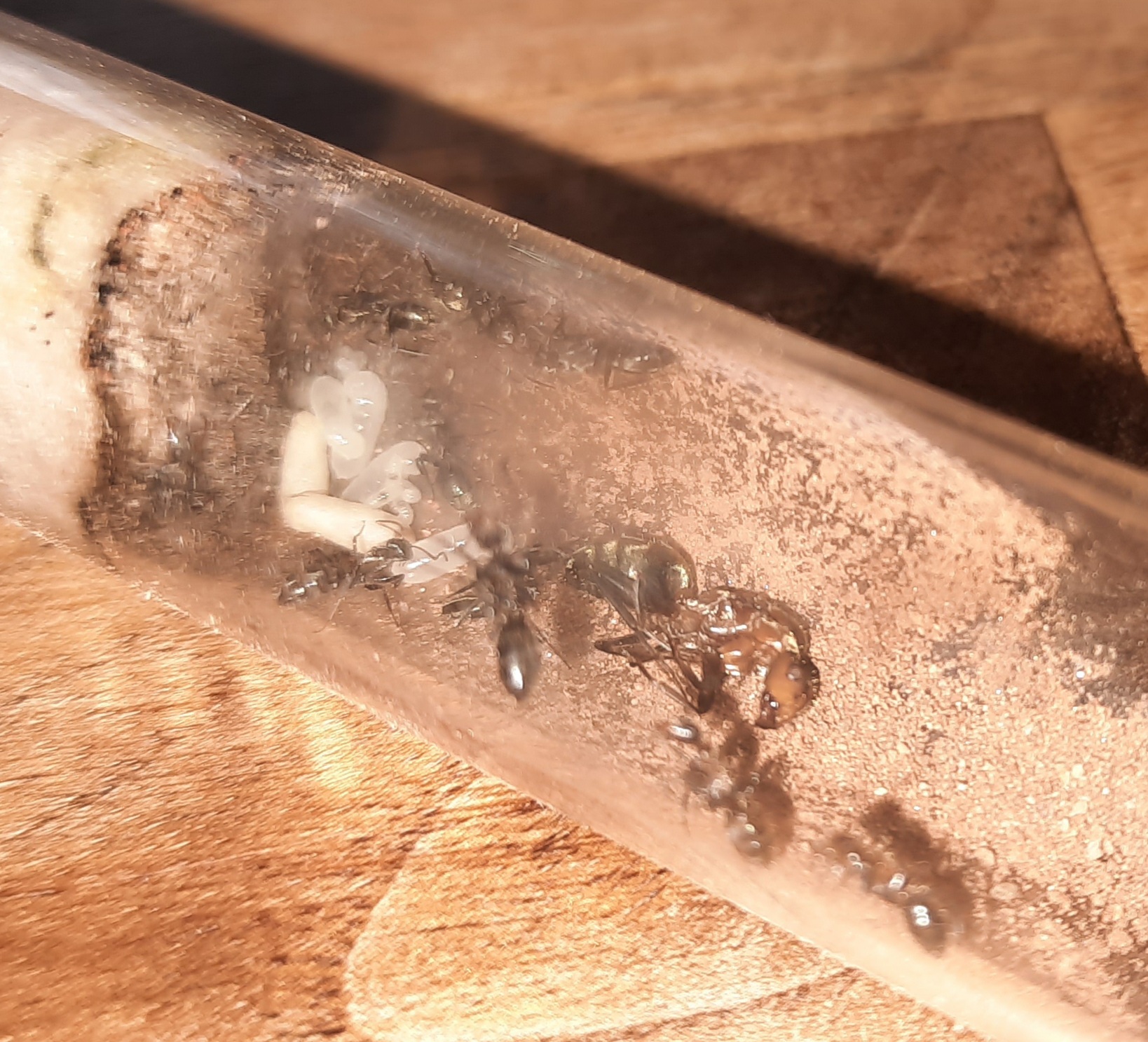 Ăbrigens habe ich alles abgesucht. Es war lediglich eine einzige Arbeiterin. Also alles nochmal gut gegangen! Denkt an euren Ausbruchsschutz (auch bei nicht so guten Kletterern)