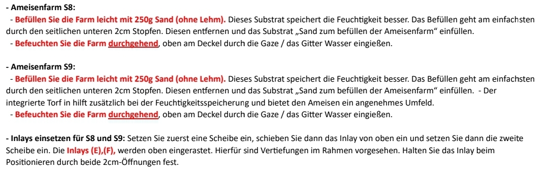 Ich habe versucht, mich an die beigelegten Instruktionen zu halten, aber wenn ich das mache, dann läuft es darauf hinaus, dass nur am Boden der Farm Sand ist, und nichts auf dem 3D Druck bzw. Wesentlichen Teil des zukünftigen Nestes. Werden die Ameisen (Messor Orientalis) das dann überhaupt nutzen?