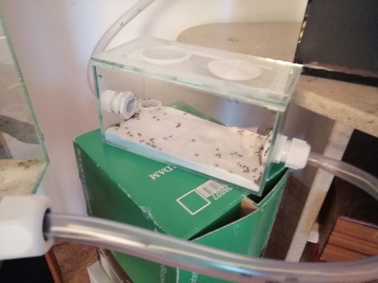 Habe, weil das so gut geklappt hat, abends noch ein Heimchen rein. Leider war das nicht tot oder betäubt und ist dann weggerannt. So ein Mist, wie beim Vorbesitzer. Ich hoffe, die Ameisen stellen es!