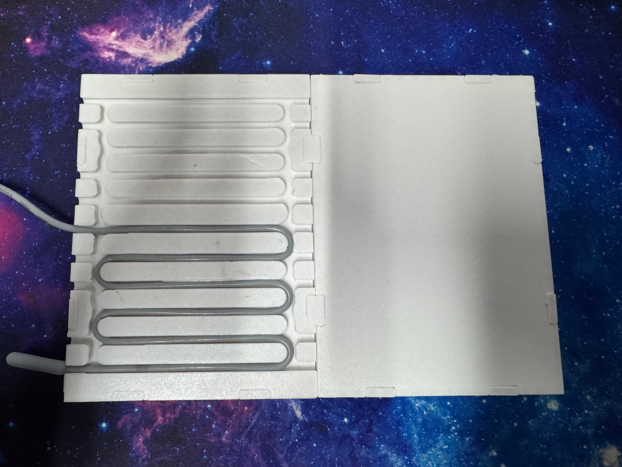 Das Heizkabel kann von beiden Seiten rein und rausgeführt werden, so lässt sich die Temperatur regulieren.