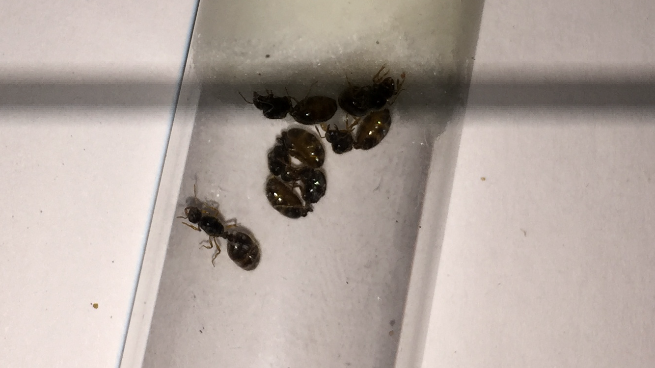 Königinnen waren 5 tot, und fein säuberlich auf einem Haufen platziert. Direkt an der Watte schien die Siegerin zu thronen.