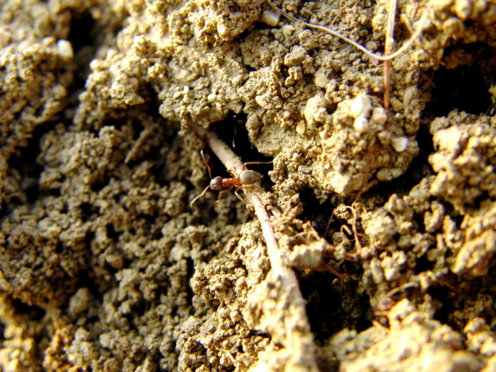 Die ersten Spuren waren nicht zu ĂŒbersehen. Diese Erde wurde 100%ig von Ameisen bewegt. Die Struktur ist unverkennbar.