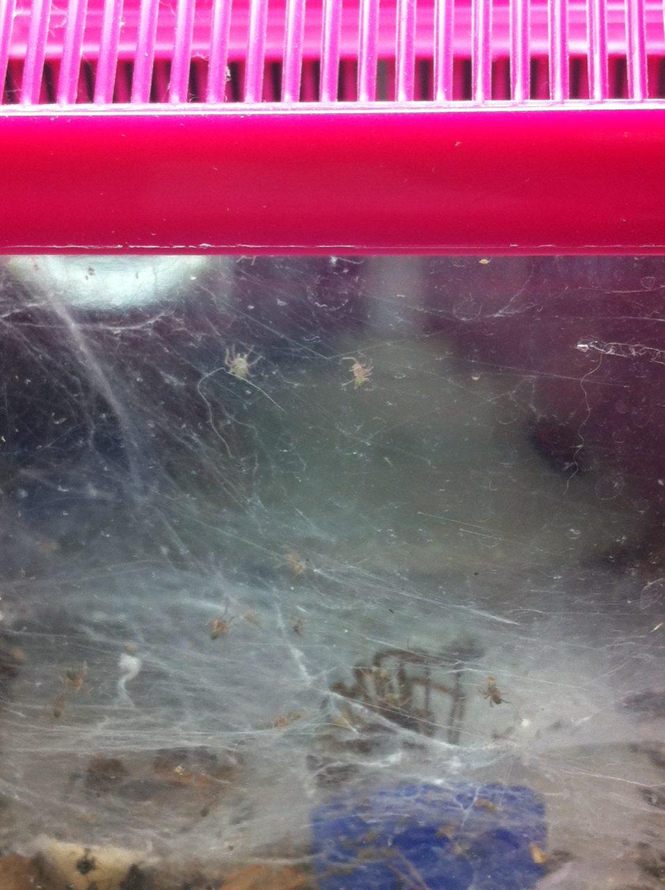 Als ich zwei Stunden spÀter noch mal zufÀllig in die Box schaute, bemerkte ich es. Lauter kleine schwarze Punkte waren im Netz verteilt.