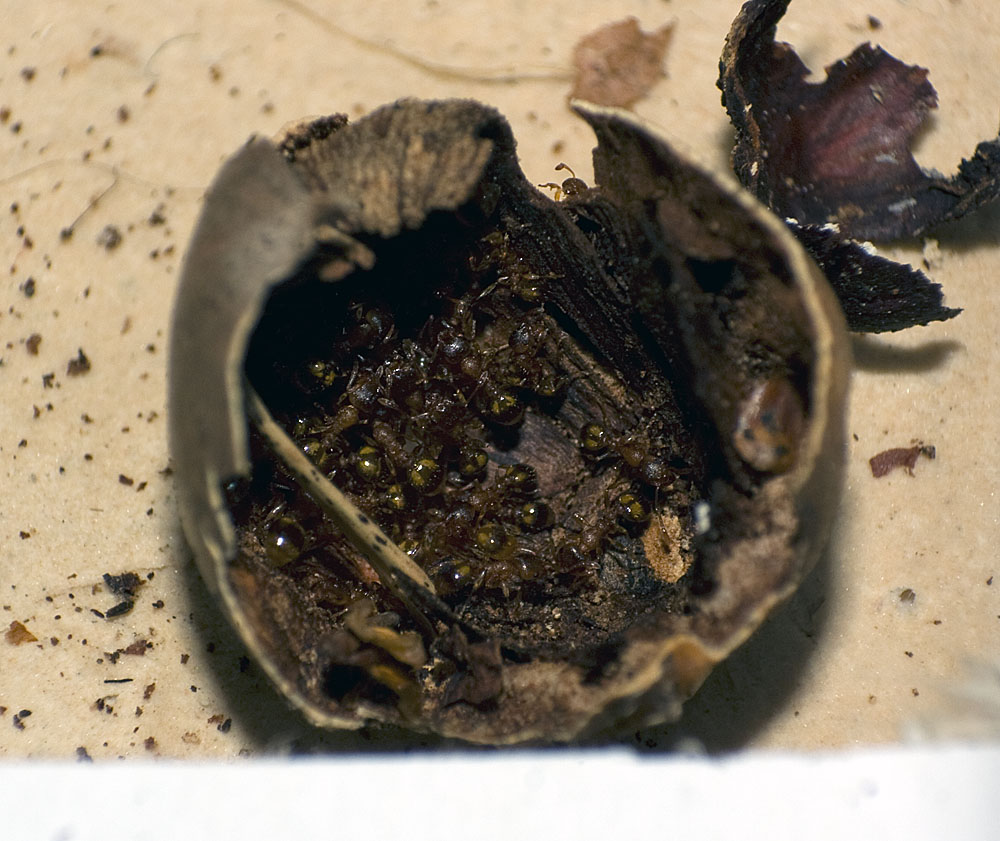 hier im Forum liest man ja immer mal was über Temnothorax nylanderi/crassispinus, vor allem wenn es um die Vergesellschaftung von Ameisen geht. Deswegen war ich heute und gestern mal etwas bei uns im Wald unterwegs um 1 oder 2 Kolonien für zu Hause zu finden. Eigentlich wollte ich eine Kolonie mit meinen Camponotus ligniperdus vergesellschaften, aber nachdem ich bemerkt habe wie gut man diese kleine Art in einer kleinen Arena beobachten kann, werde ich wohl noch etwas warten, bevor ich eine Kolonie mit zu den Camponauten gebe.