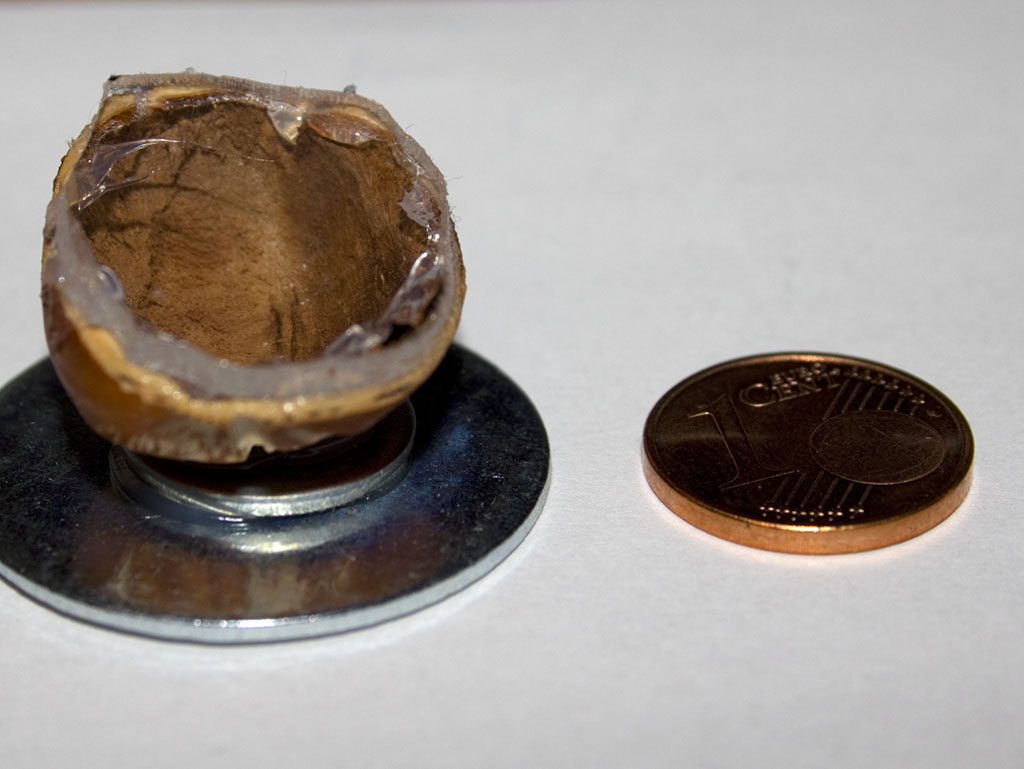 Kolonie #2 befindet sich derzeit noch mit ihrer Eichel in der Fundbox (ausgewaschener Directions Haarfarbtopf) , da ihre Arena noch etwas ausdünsten muss. Als Nest biete ich ein Mini Plexiglas Nest an, das aus 3 Schichten besteht. Der Boden des Nestes und der Arena wurde ebenfalls mit einem Spachtelmasse-Lehm-Gemisch ausgefüllt. Ich werde die Kolonie wohl morgen oder übermorgen in ihre neue Arena setzen. Heute habe ich ihnen zumindest eine Mücke und einen Tropfen Honiglösung gegeben.