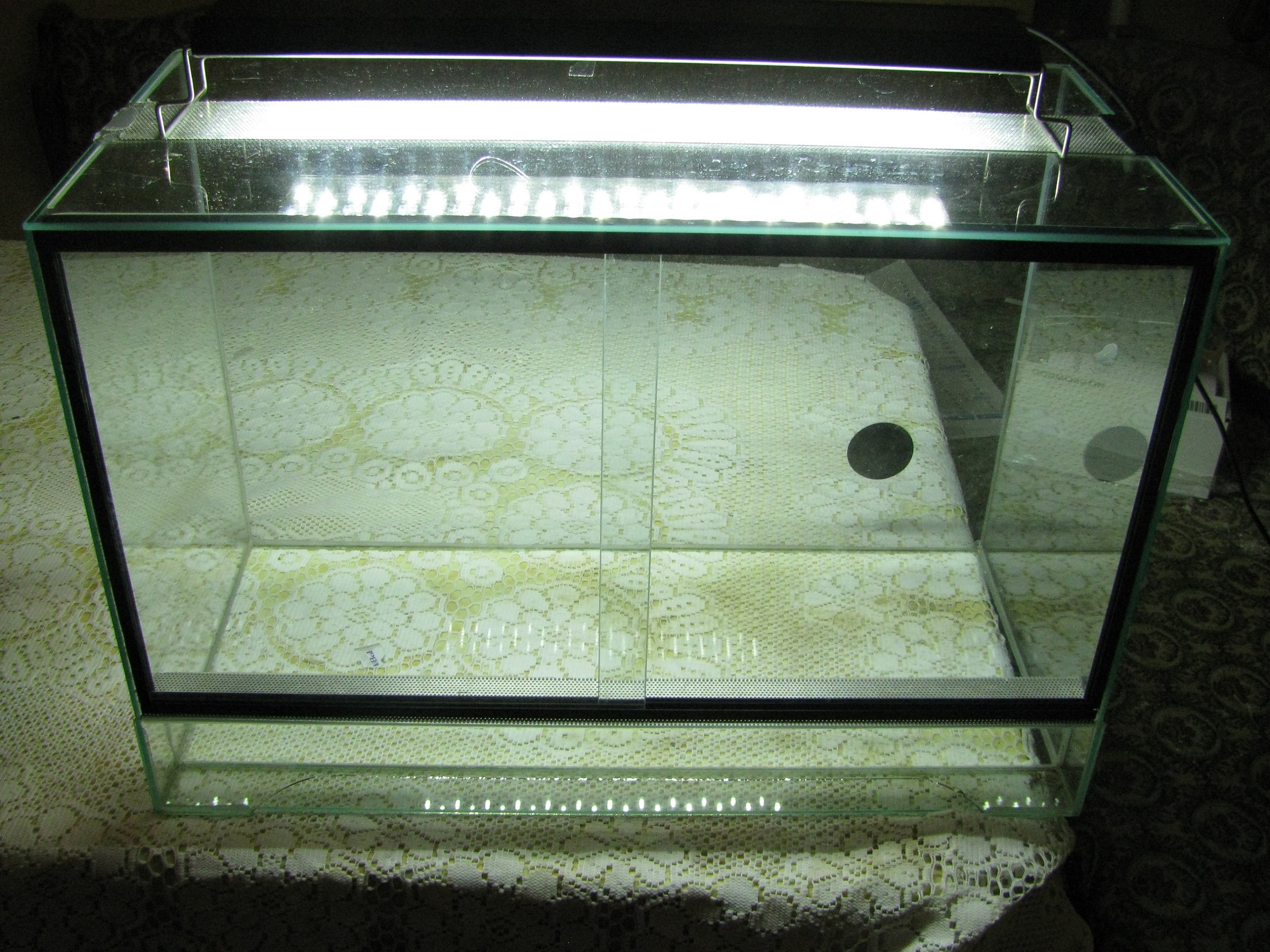Aktuell hätte ich noch ein 60x30x40 cm Terrarium zur Verfügung mit Lochblech mit Bohrungen von 1 mm.