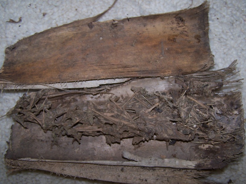 Ich stell noch mal Bilder rein, aber auf dem Bild, dass beide Becken zeigt, liegt in der Mitte des linken Beckens so ein Klumpen. Das ist ein Teil davon. Es waren noch 3 hohle bambusröhren dabei, welche aber am 2 Tag verlassen waren. Davon kommen auch Fotos. Man kann sehr schon erkennen wie die Ameisen diese im Inneren verwebt haben.
