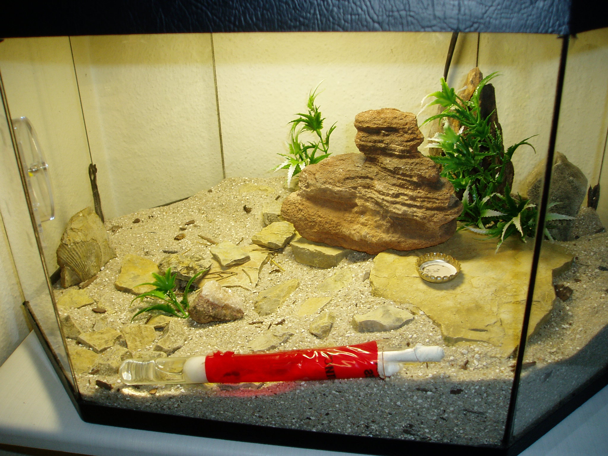 Winterruhe. Zu beschreiben dauert zu lang, ich versuch bald Fotos zu machen (hab grad keine kamera^^). Das alte Nest hab ich entfernt, dafür ein neues, mit Draufsicht und einer Art Säule die in ein kleines Wasserbecken reicht. Über diese Säule saugt sich ein Teil des Nestes mit Wasser voll. Das funktioniert besser als ich zunächst dachte, die wasserverteilung funktioniert sehr gut, das Nest ist auf einer Seite gleichmäßig feucht und ich muss nur ca alle 5-6 Tage Wasser nachfüllen. Andere YTongs die ich von oben bewässert habe, musste ich täglich nachfüllen und das Wasser ist oft nach unten aus dem YTong raus in den Untergrund gesickert, das wird durch die von-unten-Variante auch vermieden. Die Meisen haben das Nest noch nicht bezogen, das RG scheint noch ganz bequem zu sein.