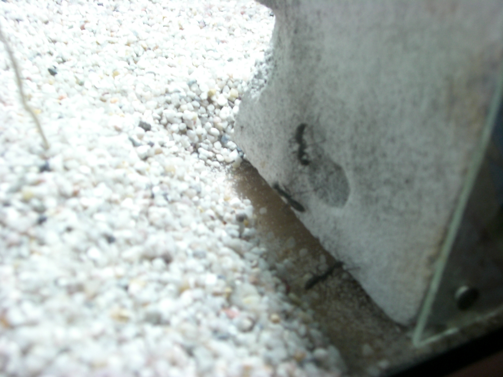 Die Ameisen entdeckten sehr schnell das Y-tong nest und haben auch schnell bezogen, jedoch gab es lange zeit noch eine kleine Randgruppe die das alte Reagensglasnest bevorzugten.:-) Es dauerte eine Woche bis auch der Rest in den Ytong zog. nun war es mir möglich erstmals eine Bestandsaufnahem durchzuführen. es sind so um die 85 Arbeiterinnen und mindestens eine