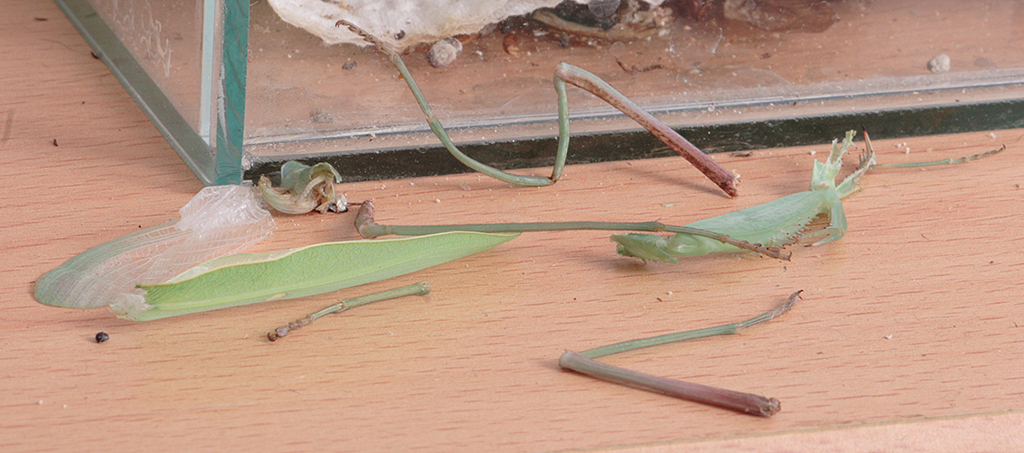 Auf dem 2ten Bild sieht man was ĂŒbrig bleibt wenn eine Hierodula membranacea nen Artgenossen verputzt.