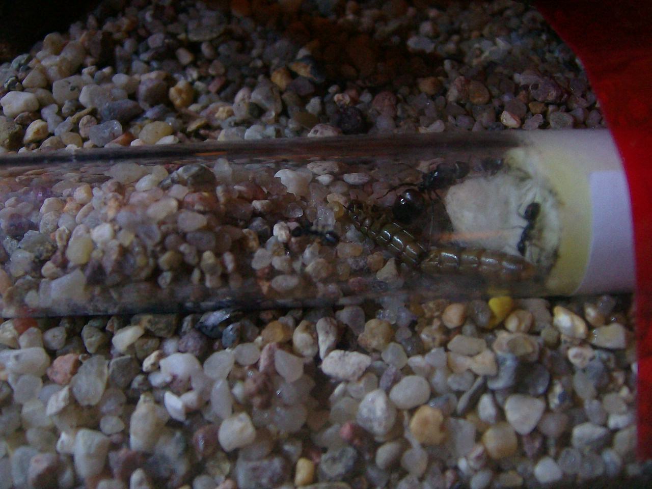 Vor 2 Tagen habe ich ihnen morgens einen überkochten Mehlwurm vor das Reagenzglas gelegt, abends war er drin, die haben ihm anscheinend der Weg frei gebuddelt und hinter ihm wieder verschlossen. Schade dass ich es nicht mit ansehen konnte.