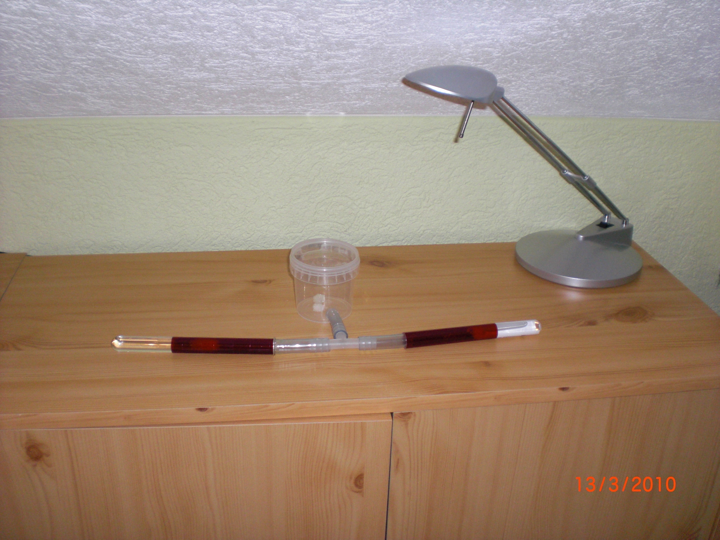 Als ich das Papier, welches um das Reagenzglas gewickelt war, entfernt habe, bekam ich einen Schock.