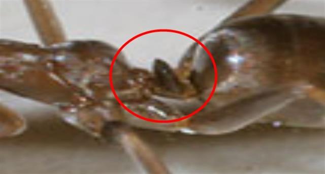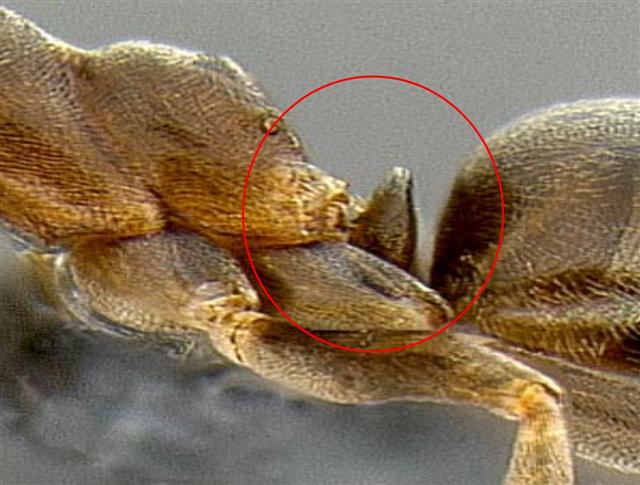 Auf diesem Bild ist auch deutlich eine hervortretende "Platte" zwischenThorax und Gaster zu erkennen. Wenn du Bild 1 aus dem ersten Post in diesem Thread betrachtest, wirst du feststellen, dass dies dort nicht zu erkennen ist.