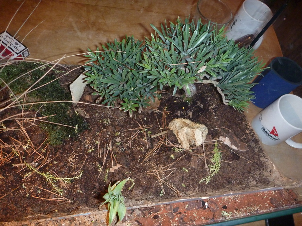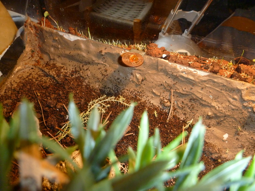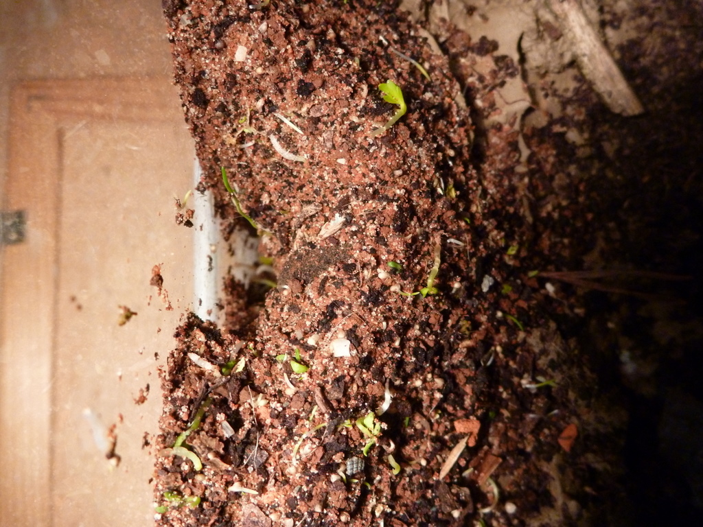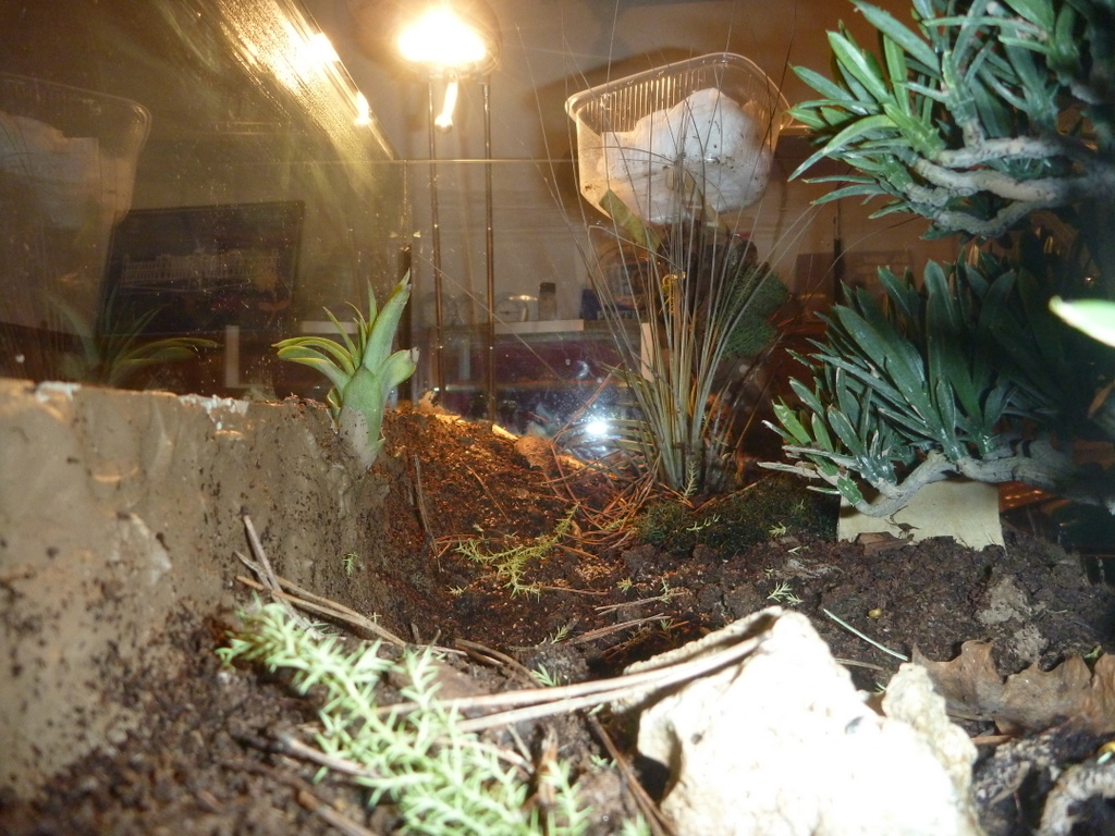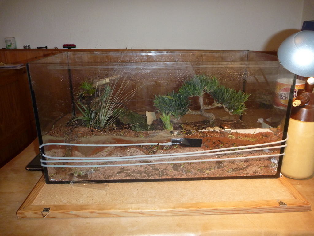 Das zweite Bild zeigt das Terrarium von vorne links. die gesamte Front ist als Nestbereich gedacht, hier sollen sich die Ameisen eingraben. der hintere Teil des Nestes ist mit Erde/Moos/Lehm/Reisig etc und etlichen Grassamen ausgelegt.