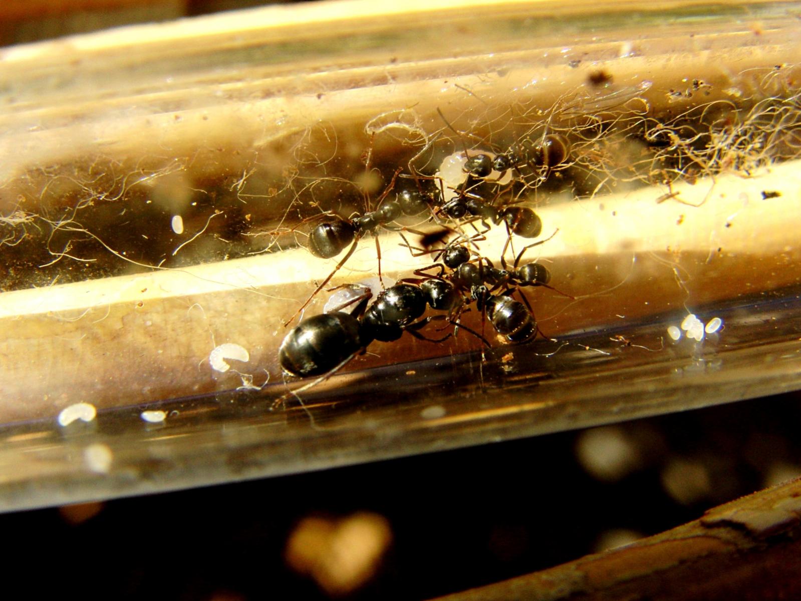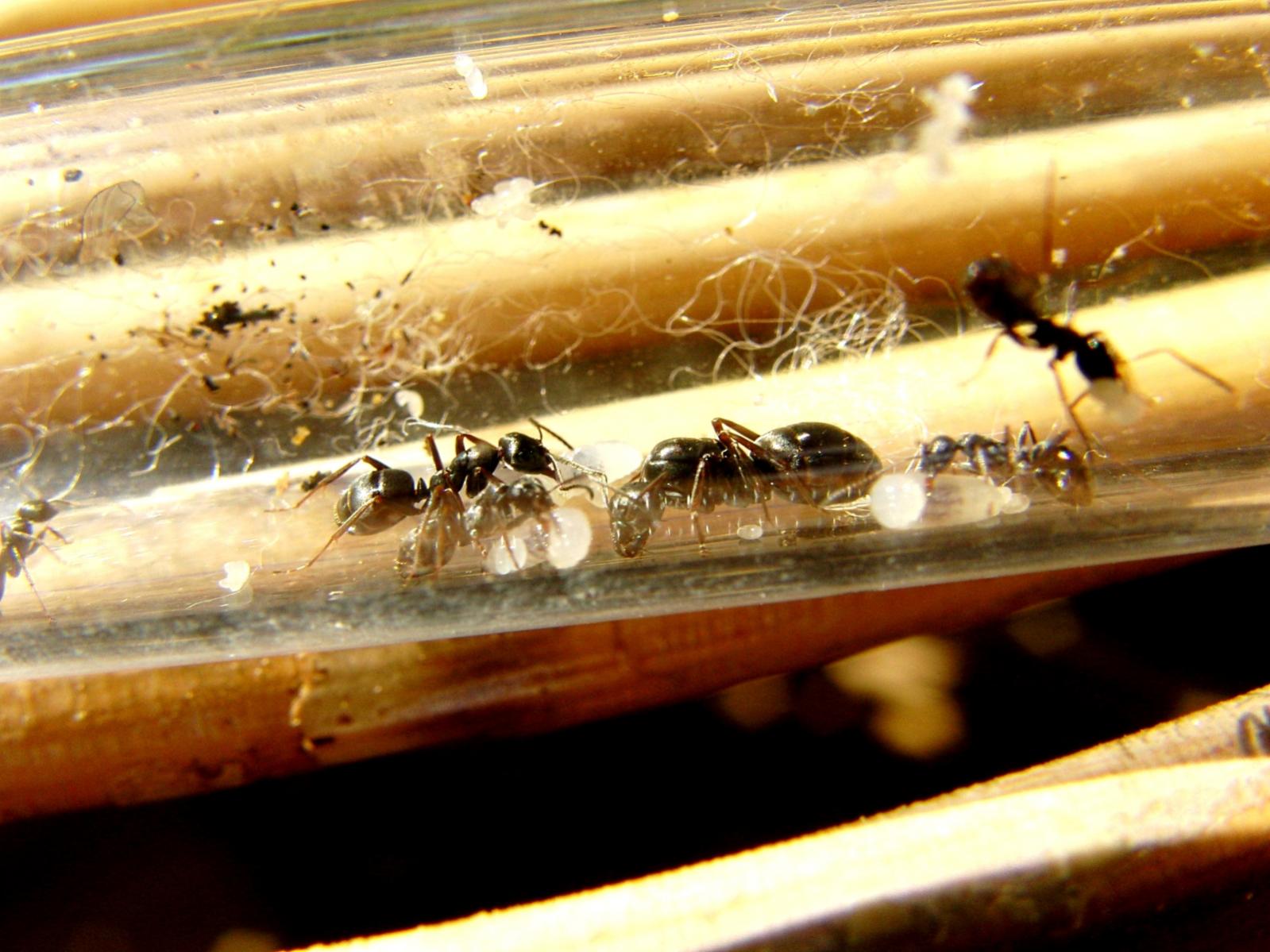 Ich habe seit der letzten Saison eine kleine Formica fusca Kolonie. Ich habe sie nahe meines Wohnortes eingesammelt. Es handelt sich um zwei Gynen mit ca. 20 Arbeiterinnen. Das Volk bestannt aus mind. 5 Gynen.