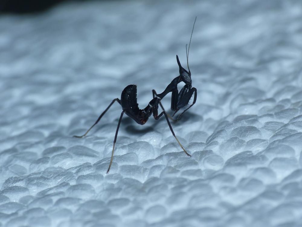 @Valli: Grundlagen der Mantidenhaltung findest du z.B. bei Mantisonline. P. paradoxa gehört zu den einfachen Arten. Im Prinzip reicht eine 20er-Plastikbox (5,8l Braplast-Dose) mit Lüftungsflächen und Fliegengaze im Deckel (immer sinnvoll bei Mantiden und Phasmiden zum Festhalten bei den Häutungen) und dünne Zweige oder eine Rolle Papierdraht als Einrichtung. Dann noch ein kleiner Halogenspot o.ä. von aussen drauf für erhöhte Zimmertemperatur und das war's eigentlich schon.