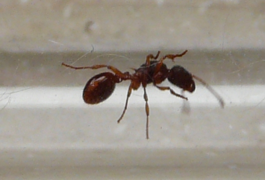 Auf meinem iPod erkenne ich das Foto extremst schlecht, aber aufgrund der kleinen Gaster, der von dir genannten Größe und der rötlichen Färbung würde ich Myrmica spec. vermuten.