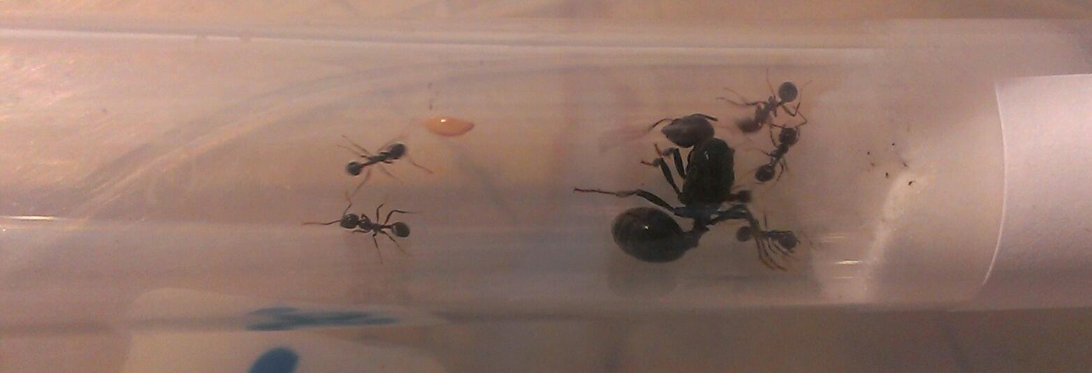 Der Zugang vom Reagenzglas in die Box könnte zu hoch sein, dazu fĂŒhren das die Ameisen nicht mehr ins Reagenzglas finden.