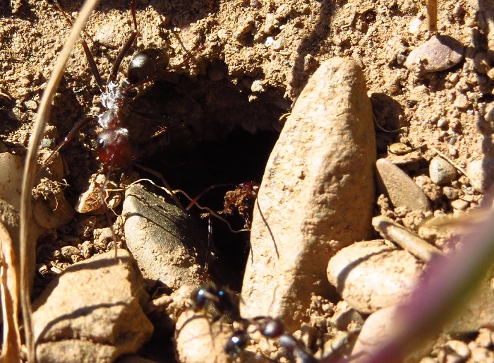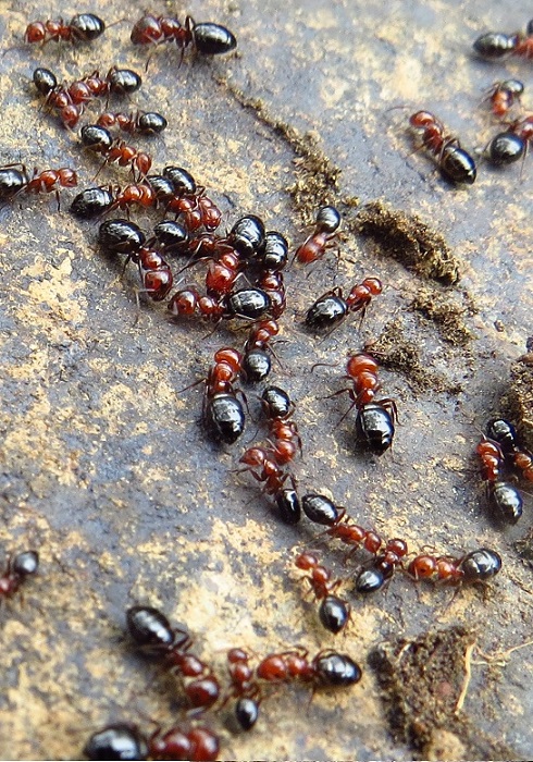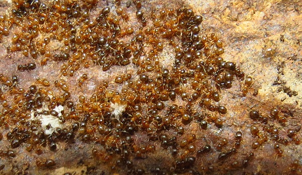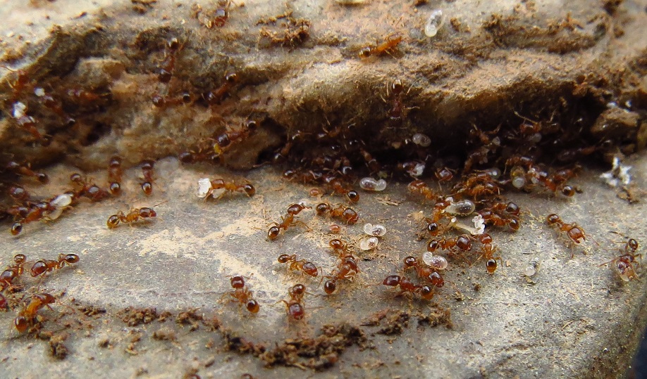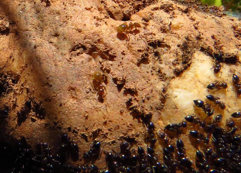 Andere Arten mit ähnlicher Futterbeschaffungsstrategie werden von den riesigen Tapinoma Nestern in einigen Habitaten komplett verdrängt. Etwa konnte ich nur ein einziges mal in einem eher kühlen Wald einige Pheidole pallidula Nester entdecken. Die Art fehlt in den meisten Habitaten gänzlich, im krassen Gegenteil zu Kroatien, wo diese eine der häufigsten Arten darstellt.