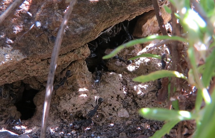 Deutlich häufiger waren Camponotus barbaricus zu finden. Die dunklen Ameisen bilden Kolonien mit sehr zahlreichen Zweignestern, in denen teilweise nur wenige Arbeiterinnen und