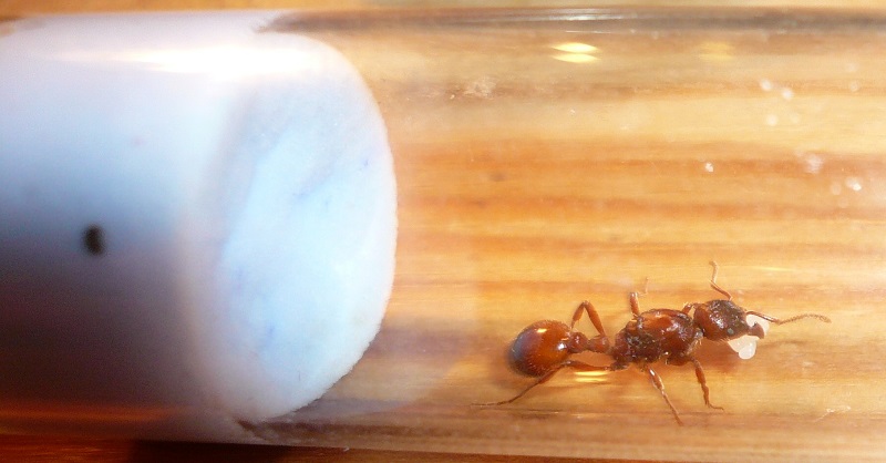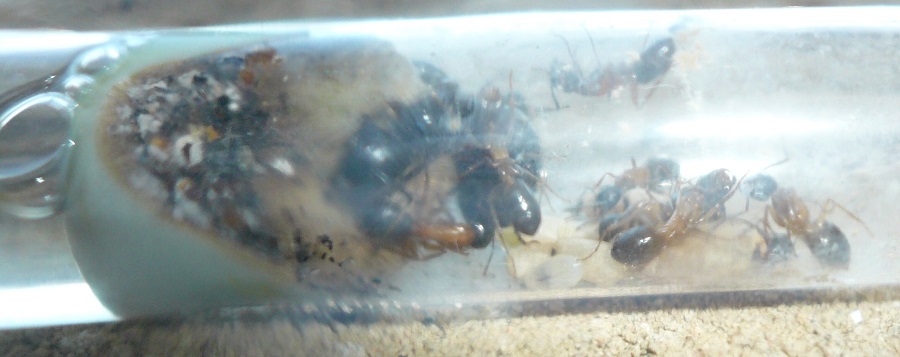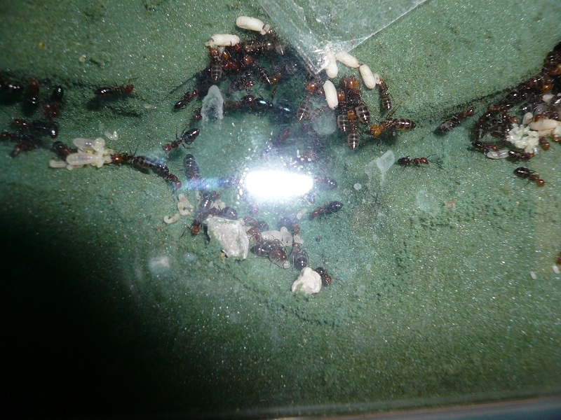 C. herculeanus hatten in der WR ein Nahtoderlebnis, der Wassertank war halb gefroren, dadurch hat sich der Nanoporen-Stopfen (ich benutze die, weil sich die Ameisen darin nicht verheddern können - ja, auch diese Art von Tod hate ich schon^^) verschoben und das Wasser hat nach dem Tauen das RG geflutet. Alle Arbeiterinnen lebten noch, nur die