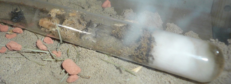 Schnell wurden sie aktiv, badeten in der künstlichen Sonne und schmissen die Toten aus dem Nest, interessanterweise nur in einem geringen Radius vom Nest entfernt und nicht auf ihren Müll am andren Ende des Formis.