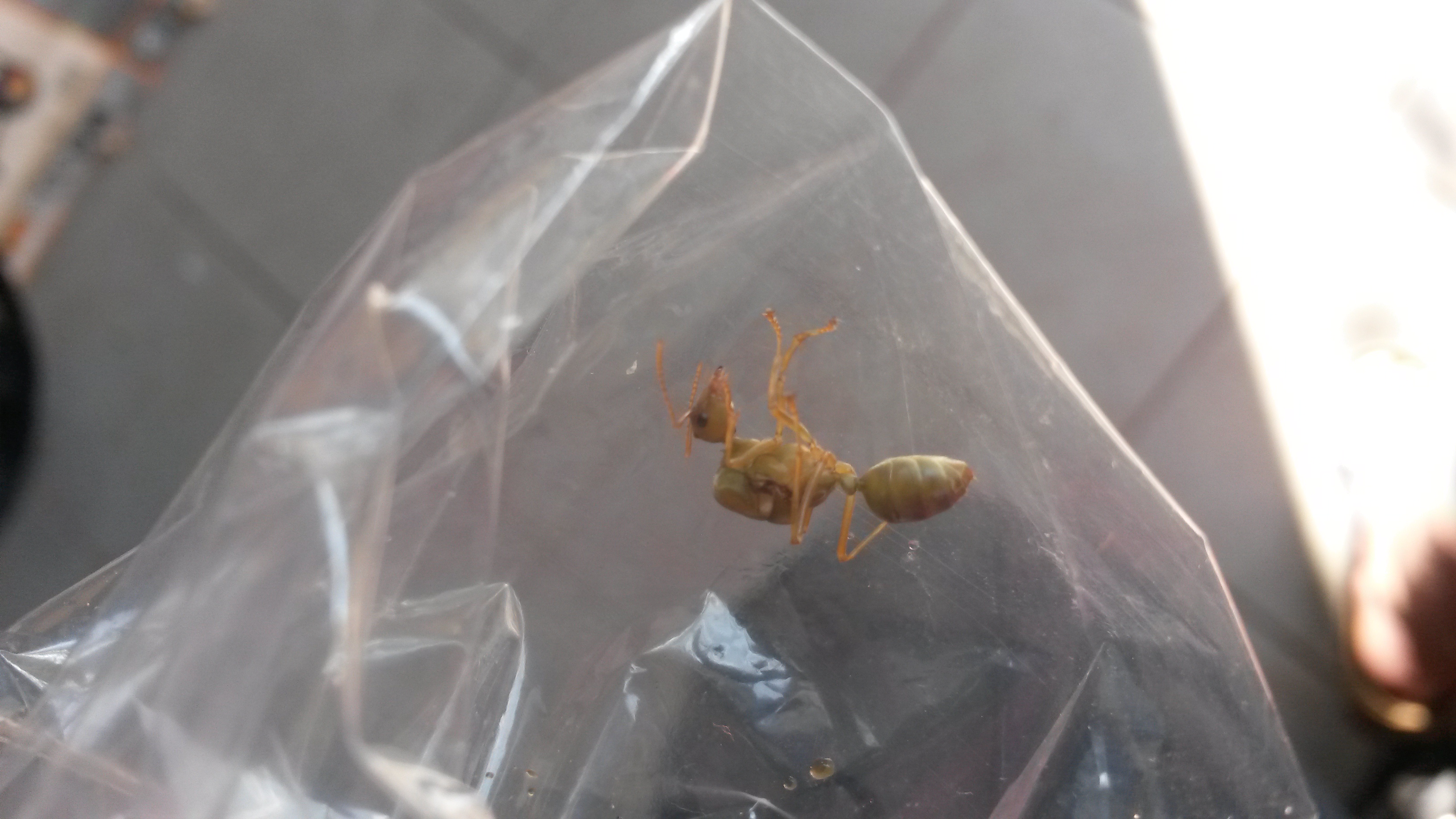 Sieht doch stark nach einer Gyne aus, würde auch auf Oecophylla tippen. Wenn man schaut, was man dafür im Fachandel zahlt, sollte man vielleicht doch mehr Bananen kaufen.