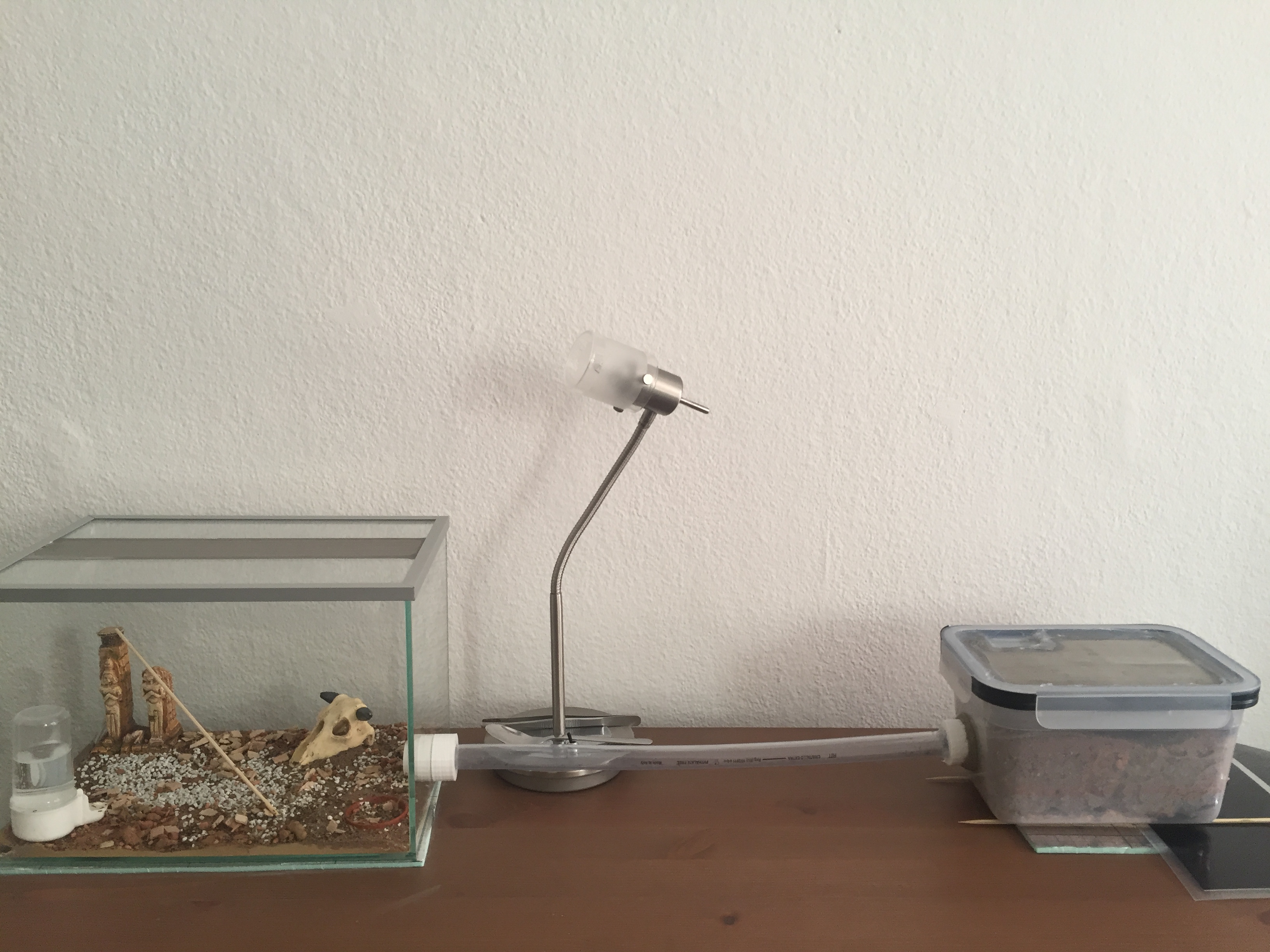Du kannst optional noch eine Belüftung unten seitlich machen - ich hatte meine P. megacephala ja auch in Frischhalteboxen und nach einer Weile hatte ich das Gefühl, dass die Nestbelüftung im Erdnest unzureichend ist bzw. das sich unten was ansammelt.