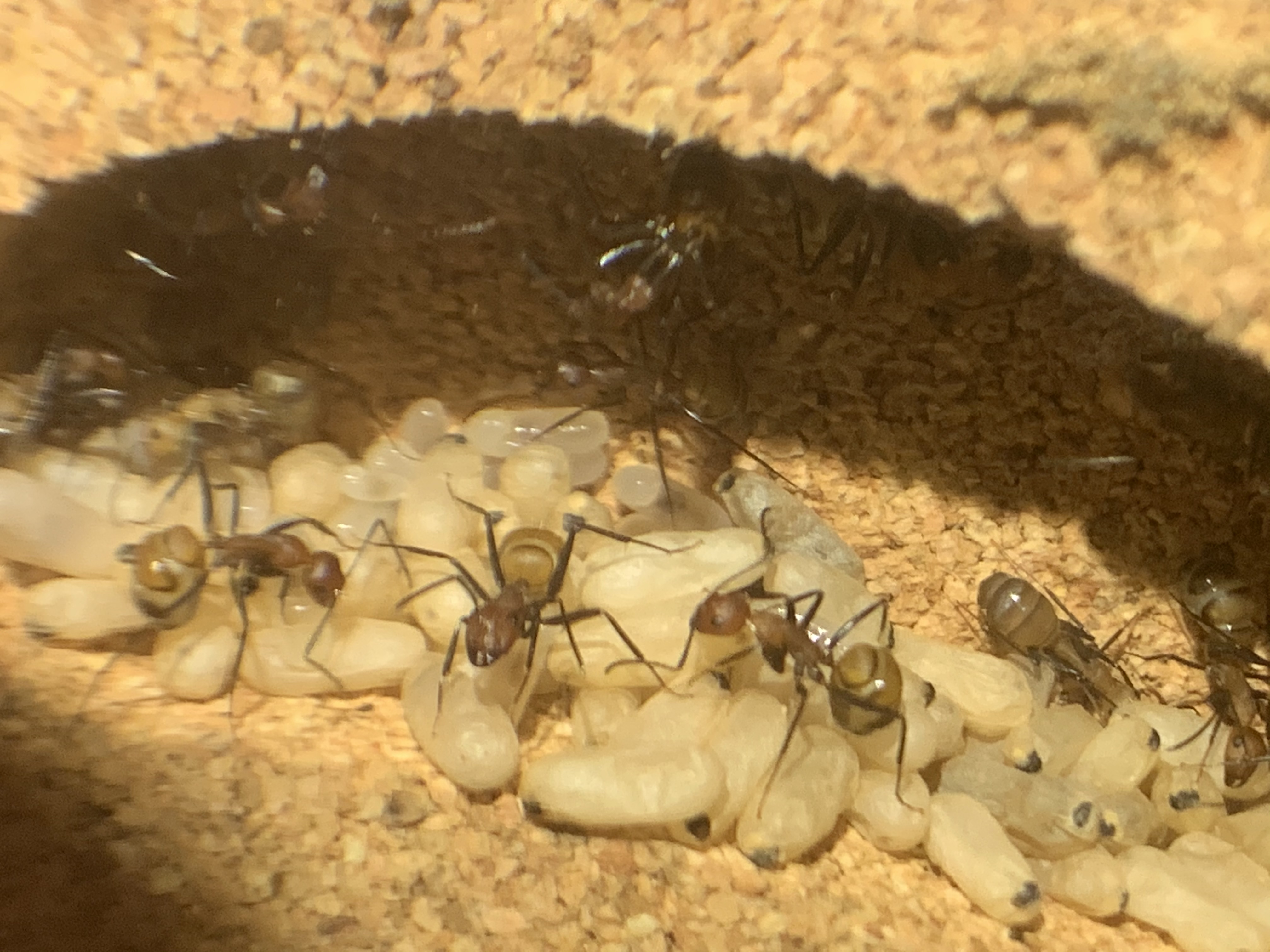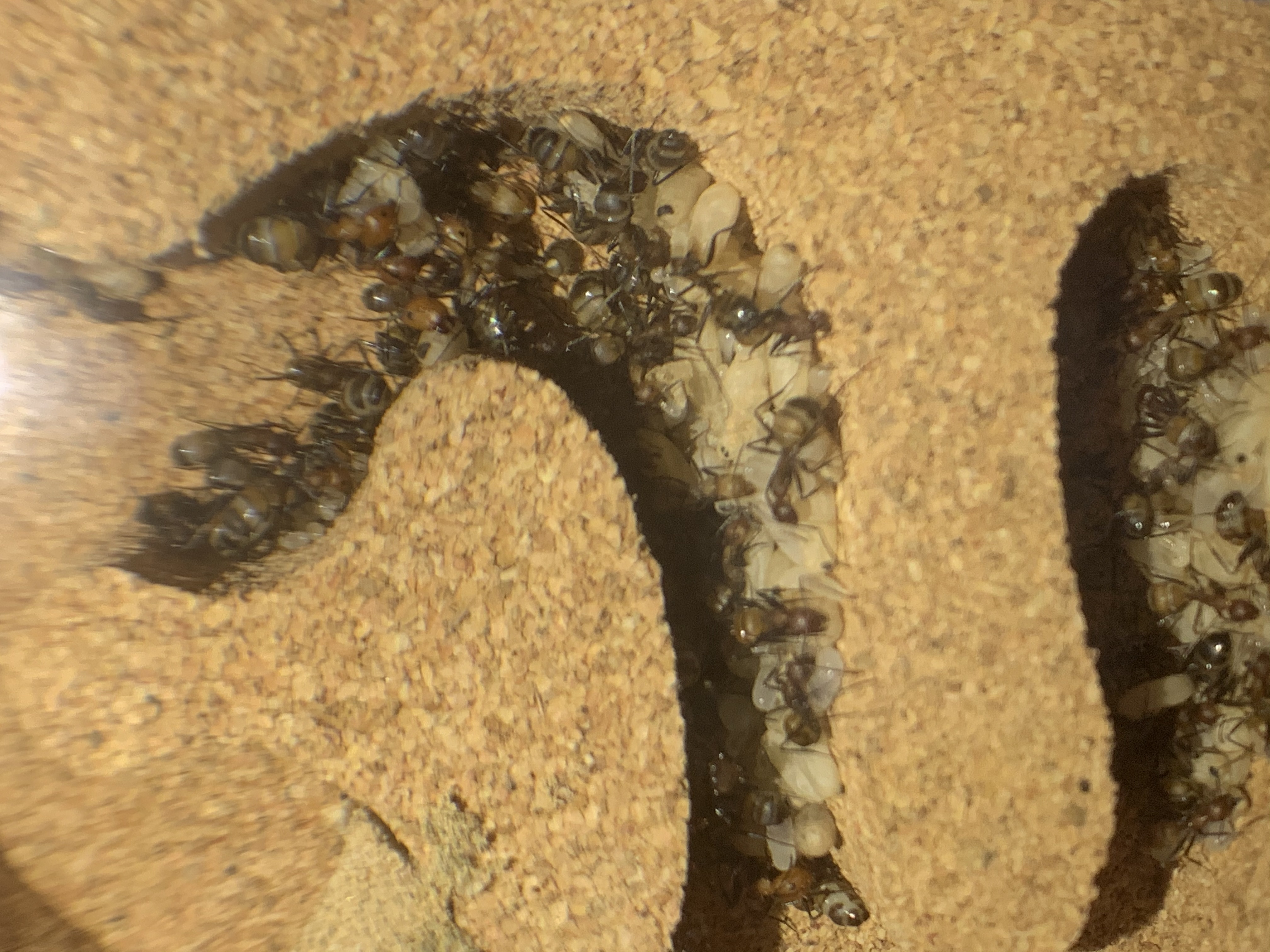 Fleisch habe ich ihnen auch ab und an gegeben, mal Rind, mal Huhn, mal Schwein, einfach immer ungewürzt! Je mehr Ameisen es wurden desto weniger wählerisch wurden sie! Sie verputzen immer mehr! Sogar Mehlwürmer nehmen sie mal!