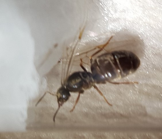 Sie wohnt in einem RG mit roter Folie abgedunkelt in einer Ameisenarena. Habe sie anfangs gefĂŒttert (Fliegen, Honig), aber sie rĂŒhrt davon nichts an. Kommt auch nicht aus dem RG raus. Sie sitzt den ganzen Tag regungslos im RG, manchmal putzt sie sich langsam. Habe einen Haufen Eier gesehen beim Blick durch den RG-Eingang. Sie sitzt die meiste Zeit vor/auf den Eiern.